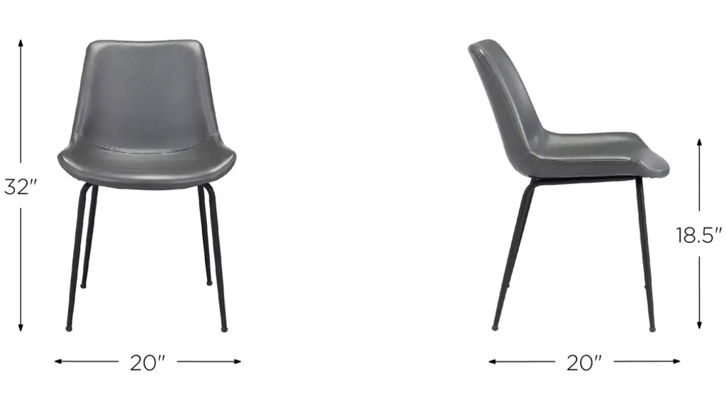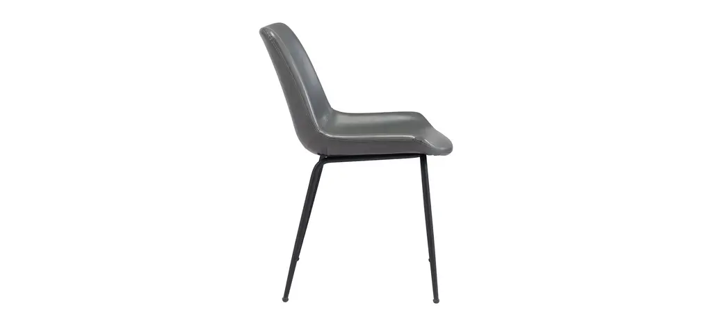 The Bryon Dining Chair: set of 2 has mid century modern urban lines and looks great in any space. With a heavy duty vinyl covering and a sturdy steel frame, this chair fits in any dining room, home office, or even as a bedroom accent chair.