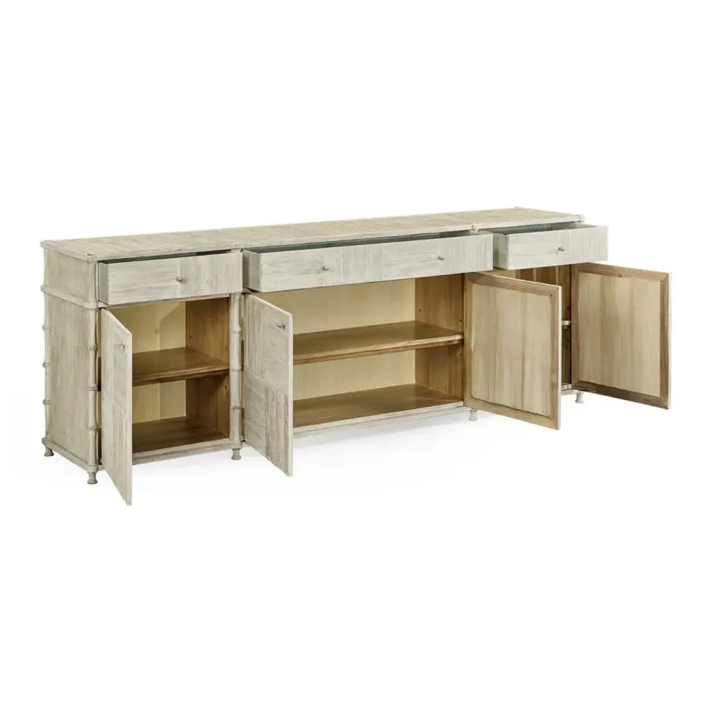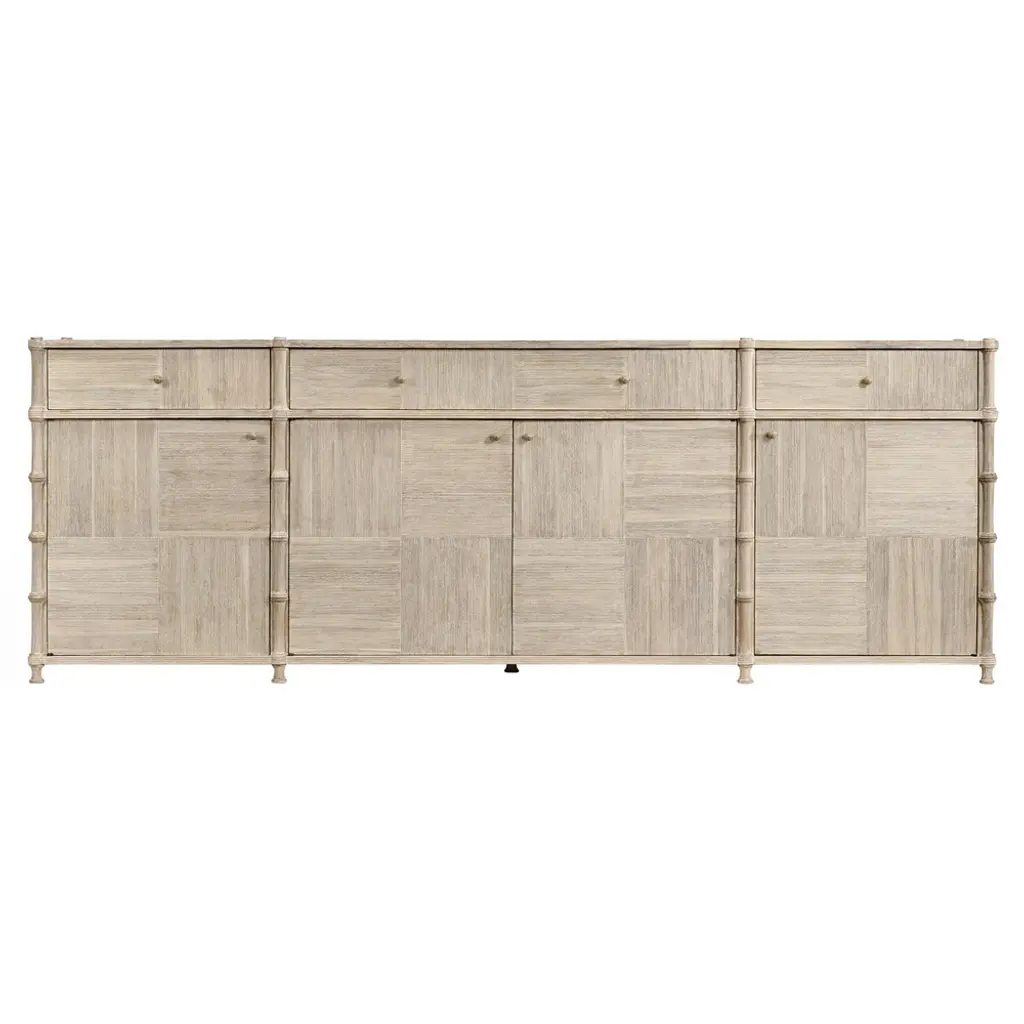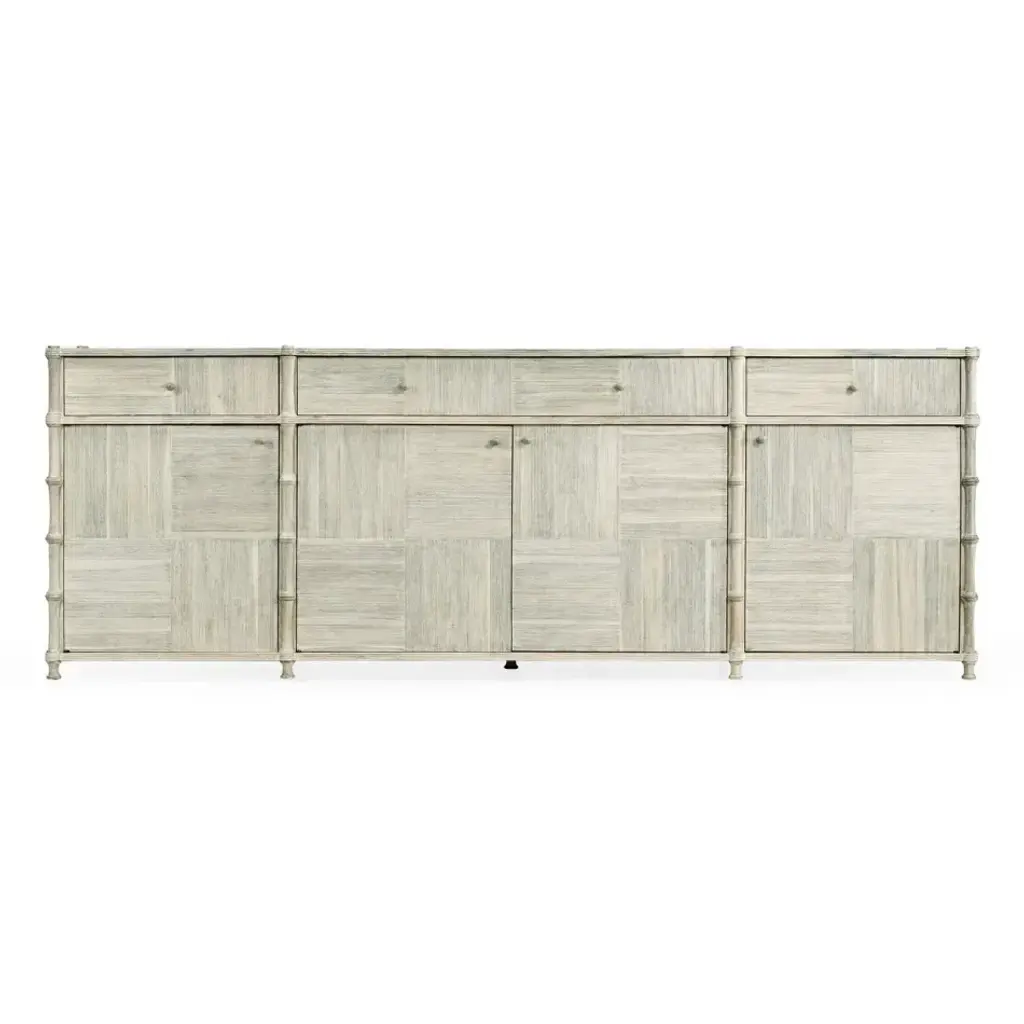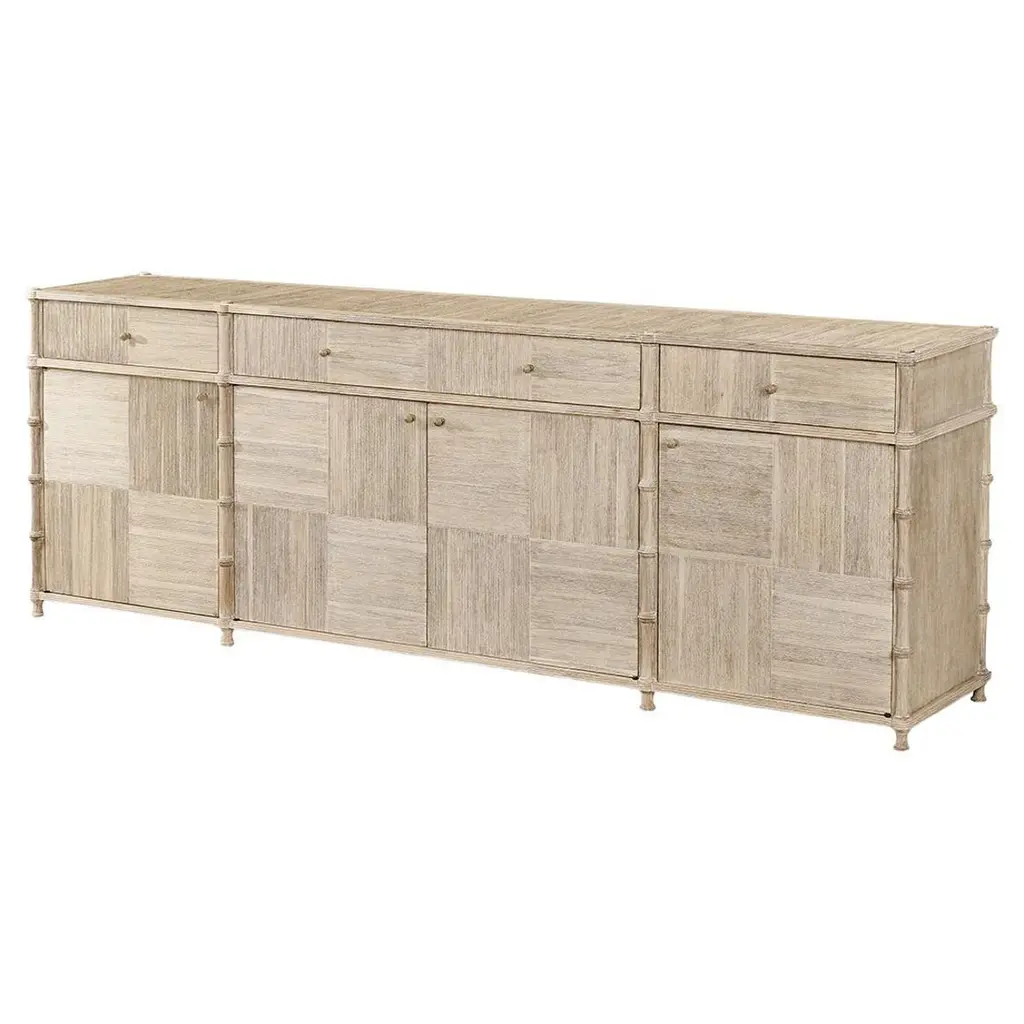 530230-WAA The Bywater Buffet uses a patchwork of acacia wood and is a modern take on an old parquet floor. This is our biggest buffet to date but the design and washed acacia finish lend it a lightness that belies its size. It's really very attractive!
