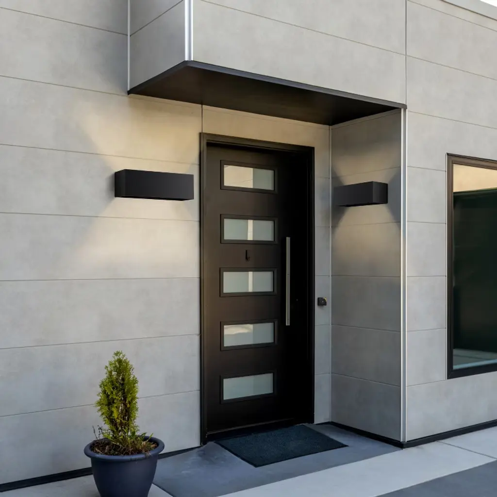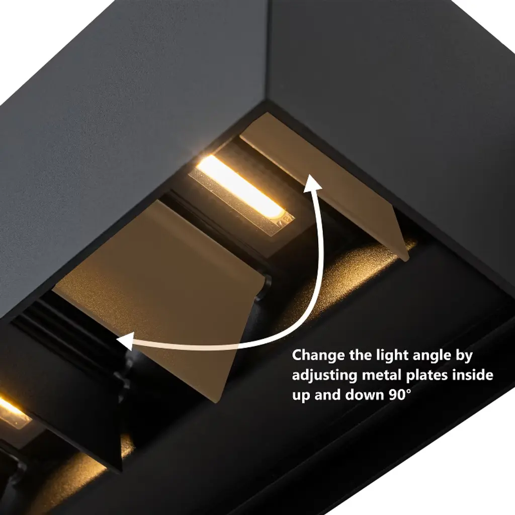 Sleek metallic shine marries modern simplicity in the clean lines of this 6-light outdoor wall light. Constructed of die-cast aluminum in matte black finish with clear glass, the elegant rectangular design wall sconce is widely used in indoor and outdoor lighting and decoration. Built-in 6 energy-efficient 3W LEDs, the fixture glows up and down giving enough light across the wall for a lovely effect. There is shifting board inside to be rotatable for adjusting the range of irradiation, maximum beam angle up to 90¡ã. After installation, the lamp cover is detachable, which makes it convenient to adjust the beam angle or clean it regularly.