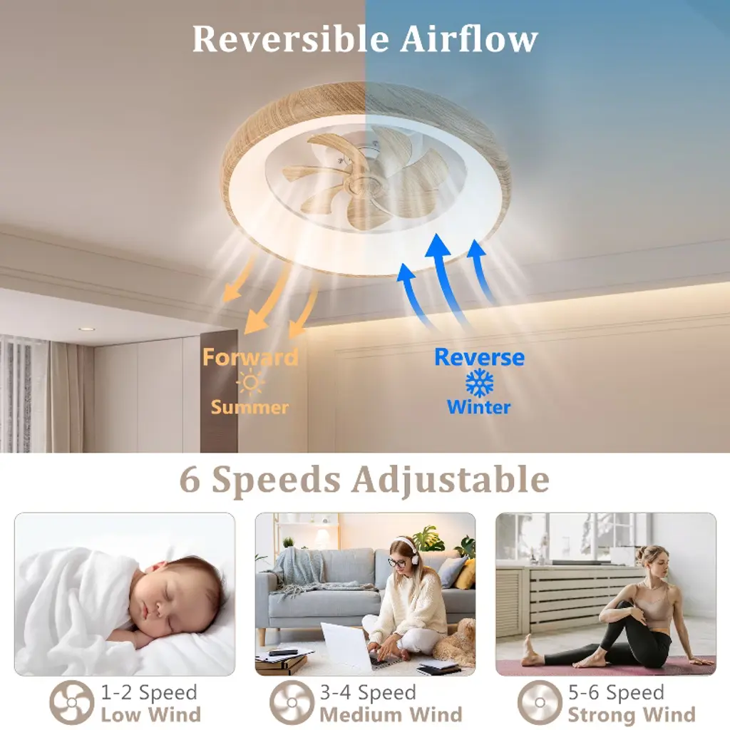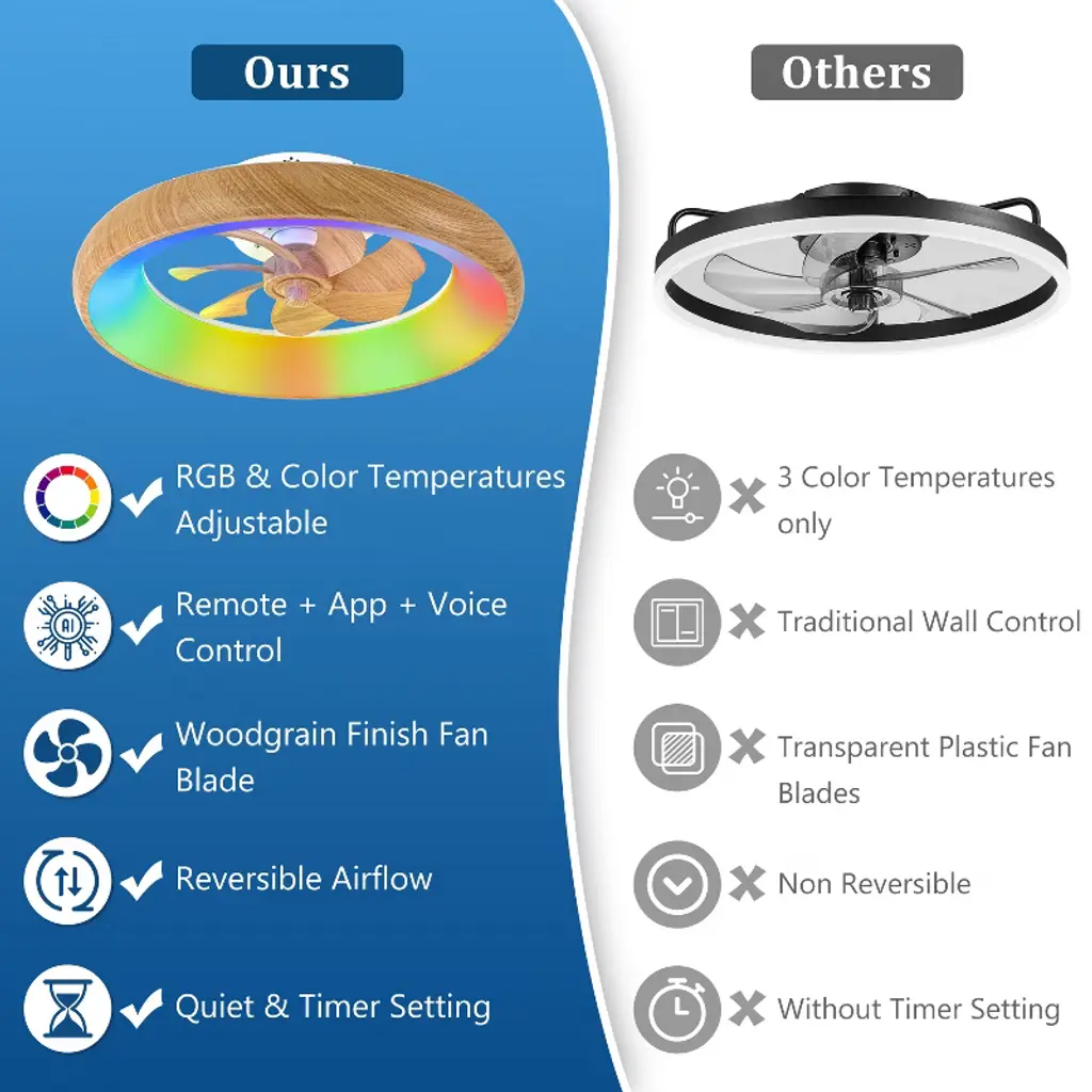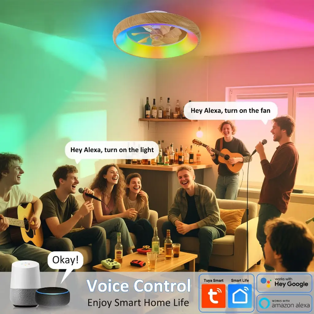 This woodgrain smart ceiling fan light embodies soft elegance and smart simplicity. Smart app and voice controls give you the freedom to adjust fan speeds and lighting from anywhere, while RGB color options and stepless color temperature let you shape the perfect ambiance¡ªwhether you're working, relaxing, or entertaining. The integrated LED is bright yet energy-efficient, and the reversible motor allows for comfortable airflow year-round. Designed to blend beauty with practicality, it¡¯s ideal for bedrooms, nurseries, or home offices where a soothing environment matters most.