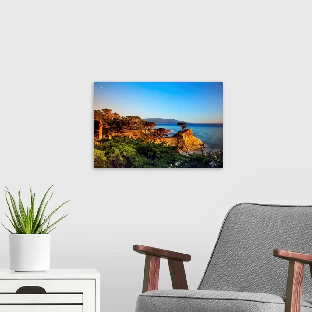 CA, Monterey Peninsula, The silhouette of the famous Lone Cypress Tree wall art for home and office decor. Discover canvas art prints, photos, mural, big canvas art and framed wall art in GreatBigCanvas.com's varied collections.
