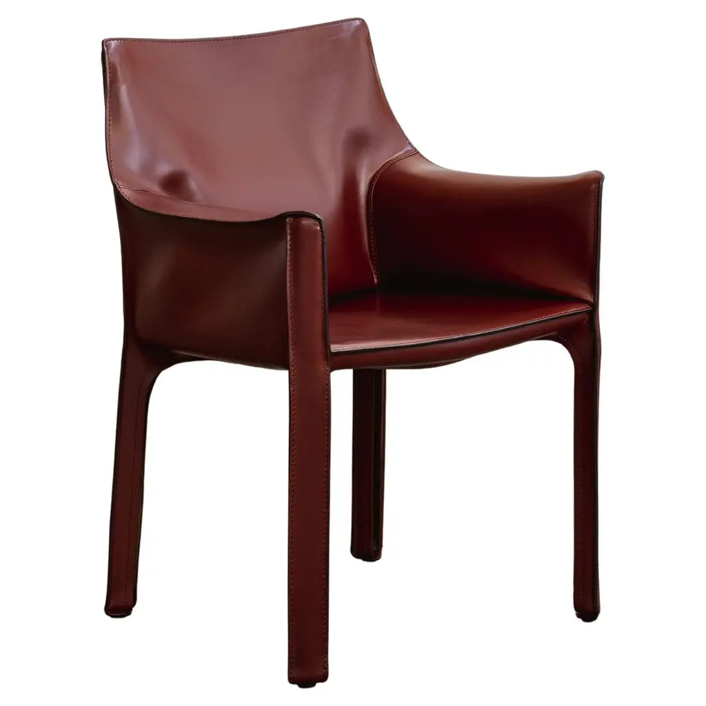 Cab 413 - Armchair in saddle leather (Upholstery cod. 1N). This was a new kind of chair, constructed totally out of leather, much cloned since then.” Thus Mario Bellini describes Cab, a best-seller that he designed in the 1970s, which is now a signature piece in Cassina’s I Contemporanei collection. Cab was the first-ever chair to feature a free-standing leather structure, inspired by how our skin fits over our skeleton. They undergo fourteen discrete procedures, again by hand. The pieces are sewn together only when their outer edges have been trimmed to ensure a perfect fit. Once assembled, the cover is attached to the chair’s steel skeleton and held in place by means of a zipper fastening, as in a bespoke tailored garment. Today this model adapts and expands to meet contemporary needs. It is now available an XL model, 5 cm deeper and 4 cm larger. Also available are new Plus saddle leathers in pure aniline, and some versions with a gradient effect by hand on a natural basis.