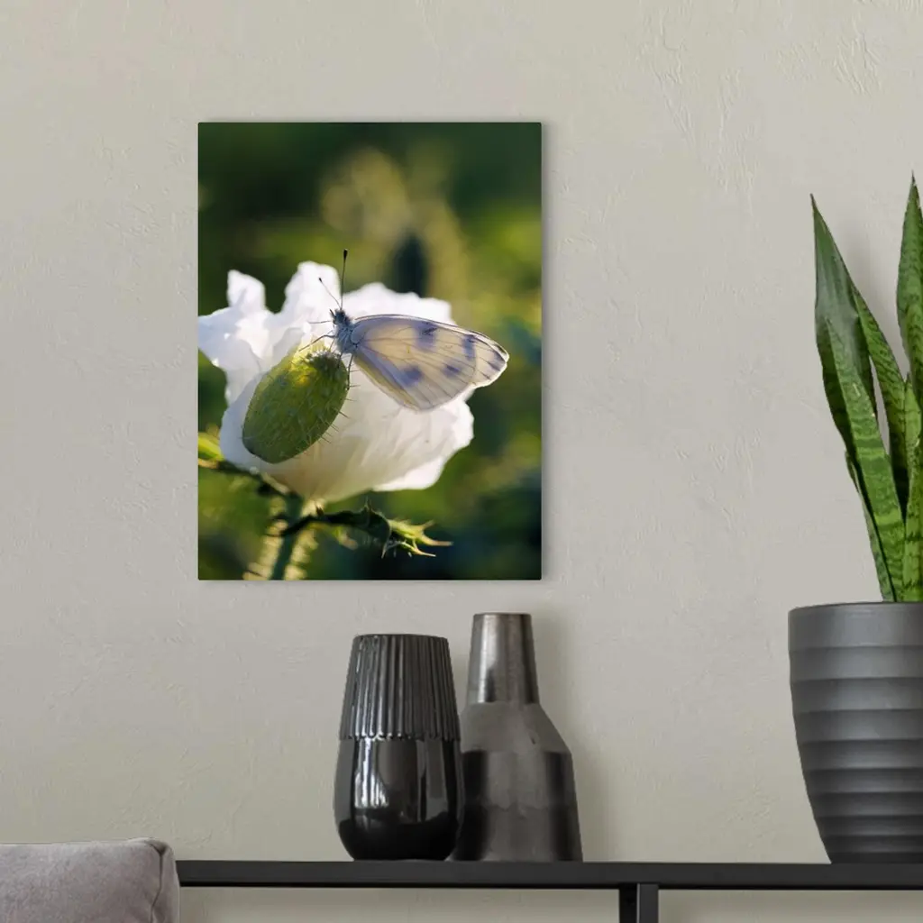 Cabbage Butterfly On Prickly Poppy Seed Pod wall art for home and office decor. Discover canvas art prints, photos, mural, big canvas art and framed wall art in GreatBigCanvas.com's varied collections.