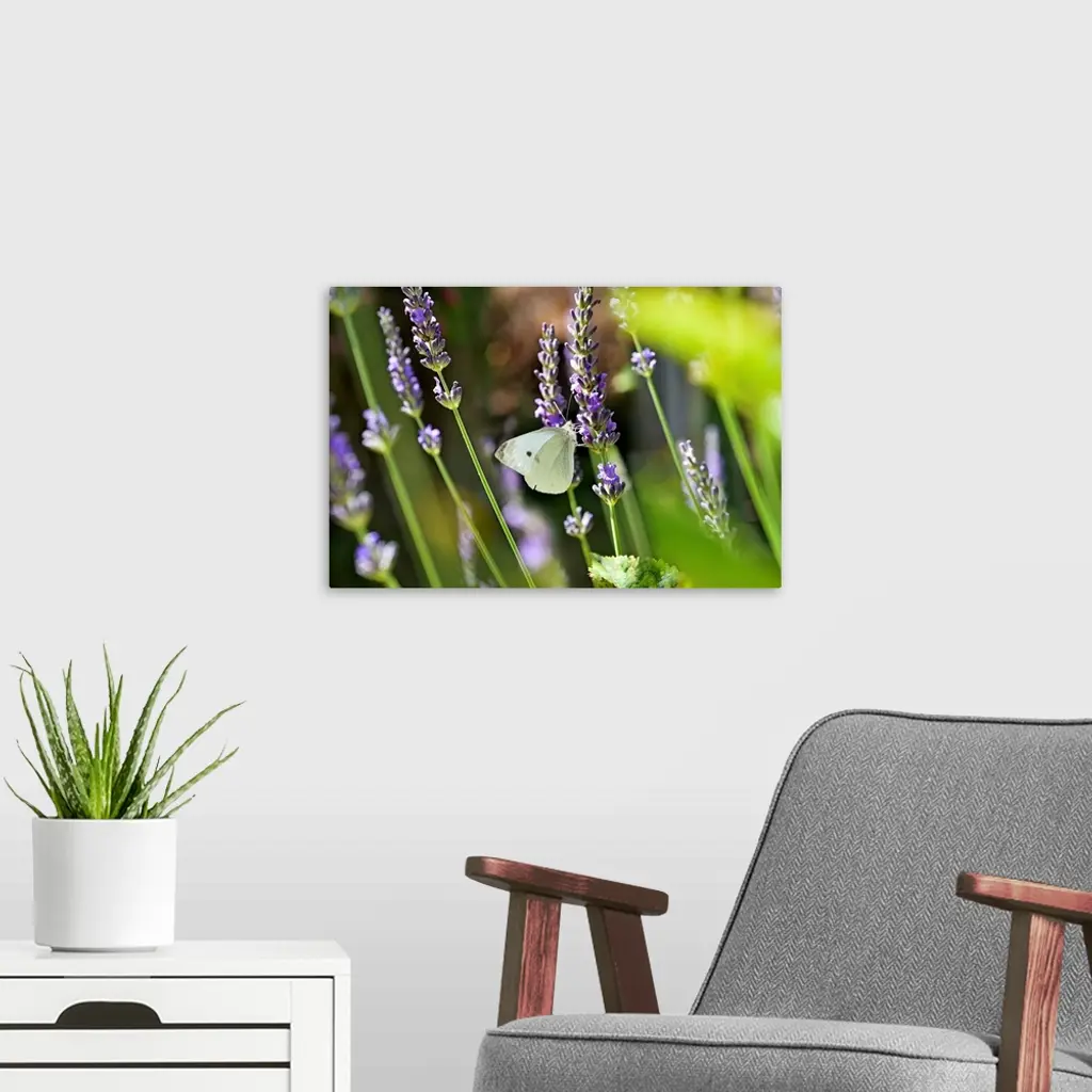 Cabbage White Butterfly On Lavender Flower, Eure-Et-Loir Department, France