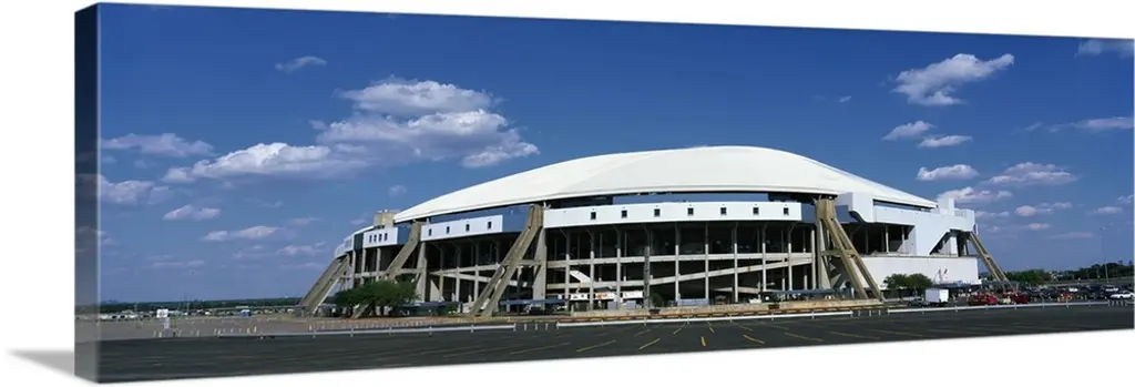 Giant, horizontal photograph taken from a hanging cable car of the outside of M & T Back Stadium in Baltimore, Maryland.