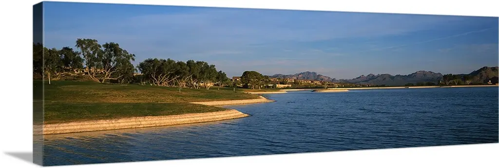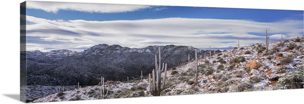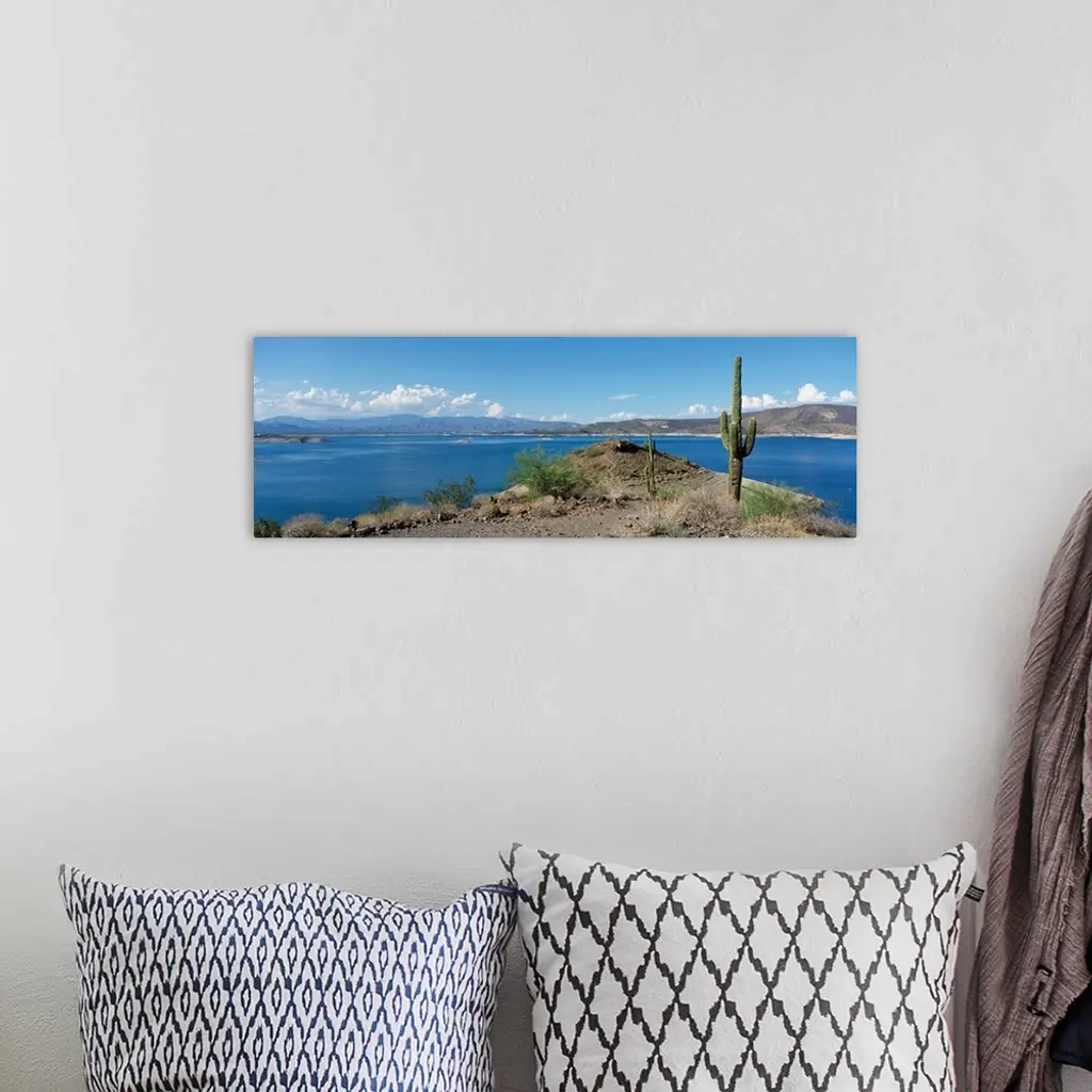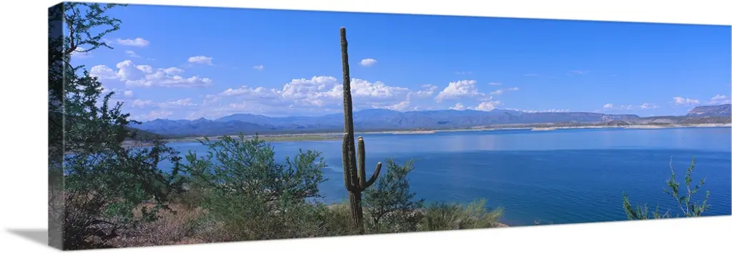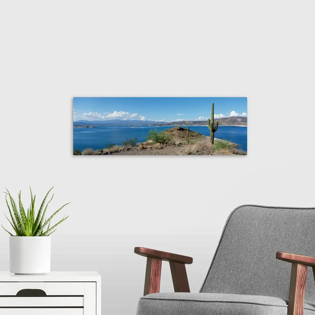 Cactus at the lakeside with a mountain range in the background, Lake Pleasant, Arizona wall art for home and office decor. Discover canvas art prints, photos, mural, big canvas art and framed wall art in GreatBigCanvas.com's varied collections.