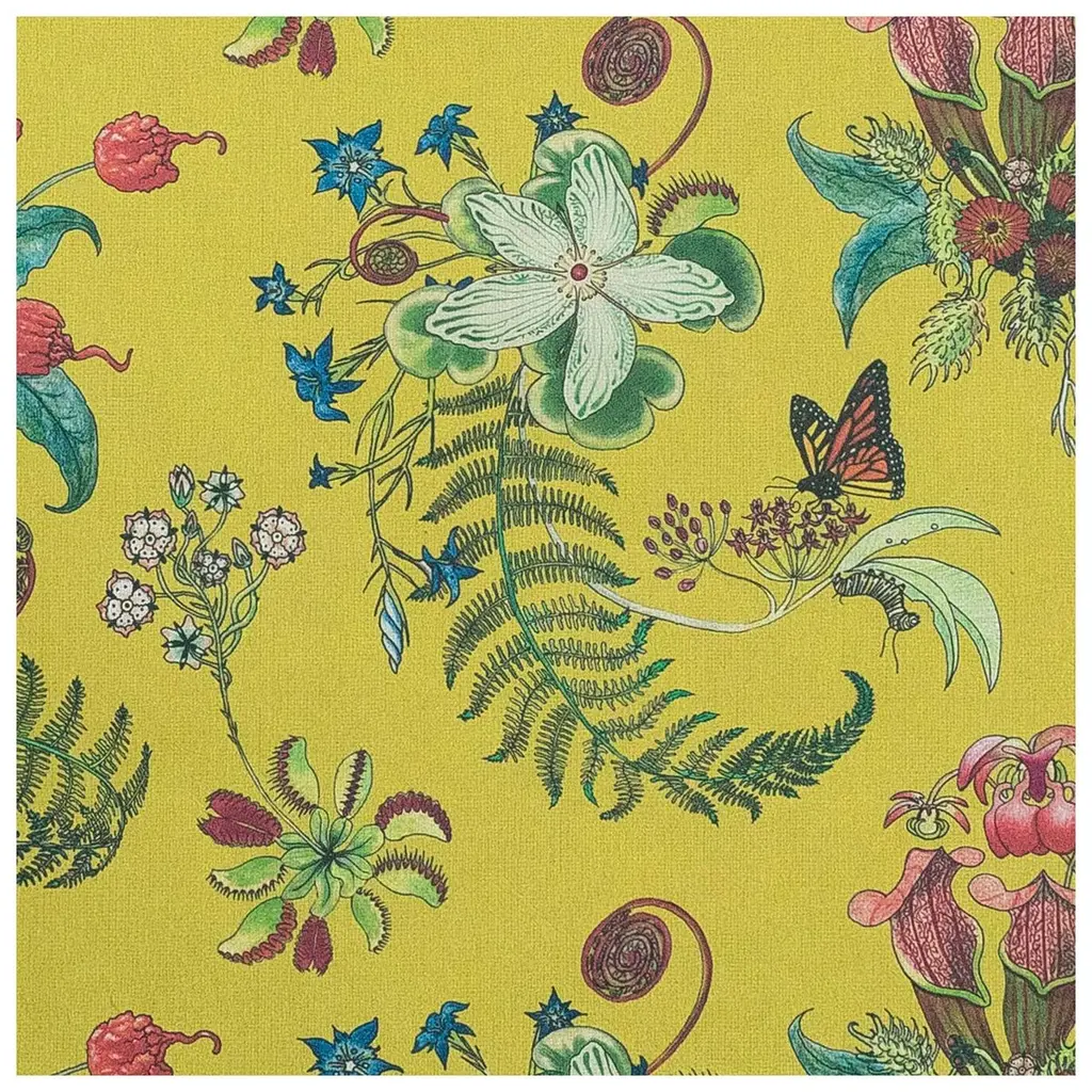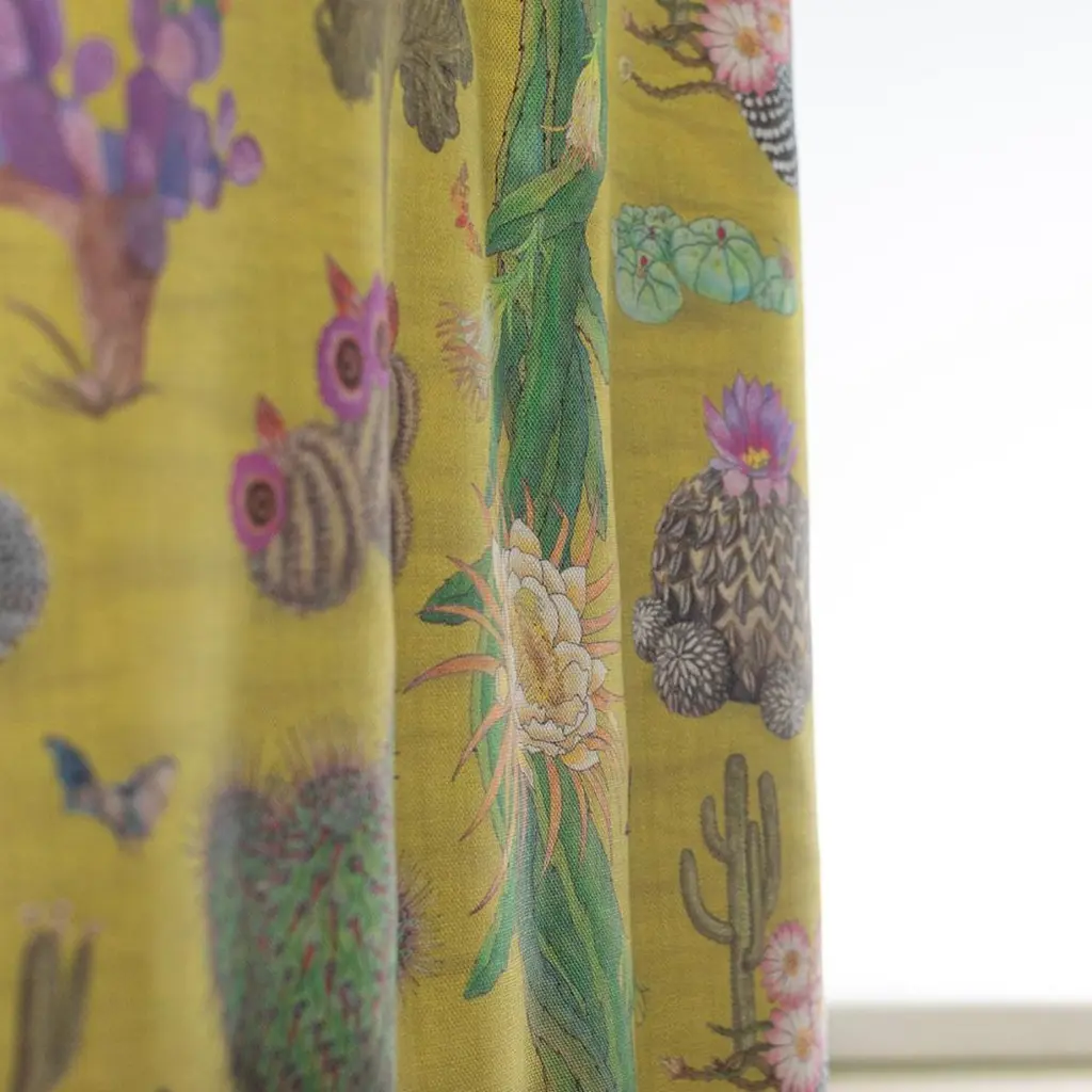 Name: Cactus MexicanosColourways: LimonFabric type: Pure linen, from flax grown in France, woven and printed in the UKComposition: 100% natural linenThese designs are available in natural pure linen of a medium weight of 250g or a heavyweight 450g bleached linenUsage: Drapery and light upholstery for the 250g linen (Martindale of 20,000 rubs), and heavier use upholstery for the 450g (Martindale of 30,000 rubs)Care: Dry clean onlyPattern repeat: Half dropHorizontal/Vertical repeat: 27" x 18" (68.6 cm x 45.7 cm)Printed width of fabric: 54" (137.2 cm).This design celebrates the incredible diversity of Mexican cacti. It is the culmination of several years Dr Susy Paisley spent in Mexico, one of the world's centres of endemism for this group of plants. It includes marvels like the Creeping Devil, a cactus in this design which actually moves across the desert floor! Cacti are enjoying a new popularity, but globally, one out of three cacti is in need of conservation attention. The design includes the Chisos Mountain hedgehog cactus, hallucinogenic Peyote, a critically endangered dragonfruit, which forms the long tendrils in the design, and lesser long-nosed bat (an essential pollinator for cacti) and the iconic saguaro and crested saguaro cacti.