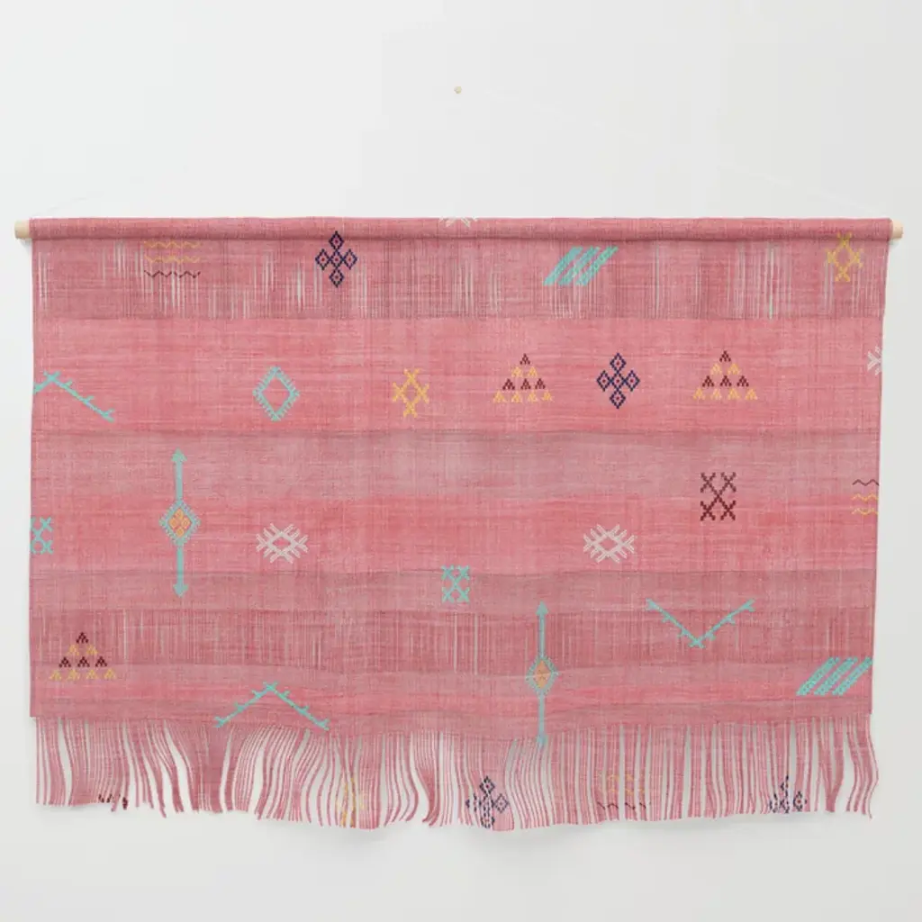 Cactus Silk Pattern In Pink Wall Hanging