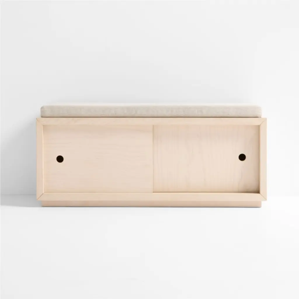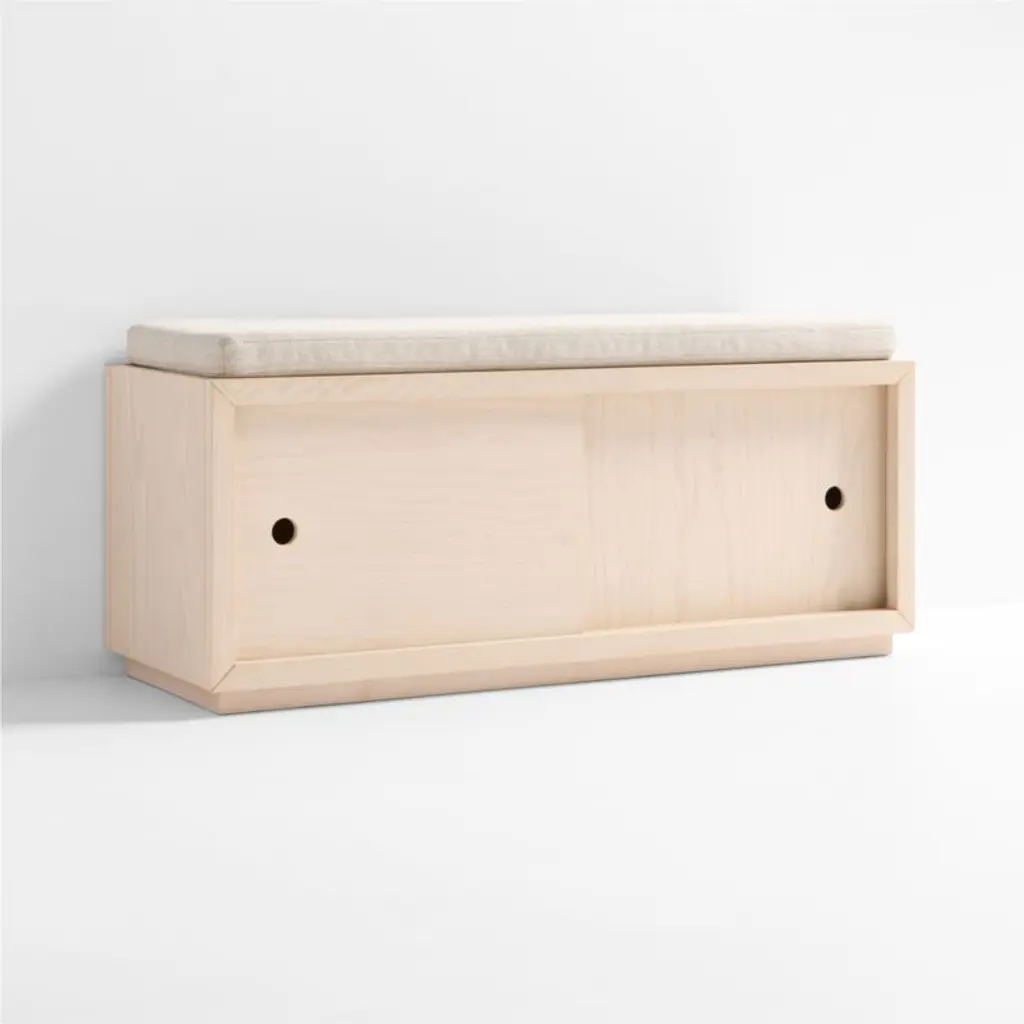 Cade Sunwashed Wood 3-Cube Sliding Door Bench With Natural Cushion