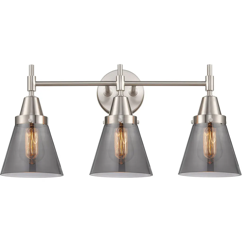 Caden 3 Light 23 Inch Satin Nickel Bath Vanity Light Wall Light In Plated Smoke Glass