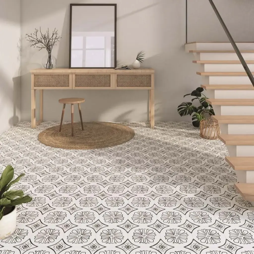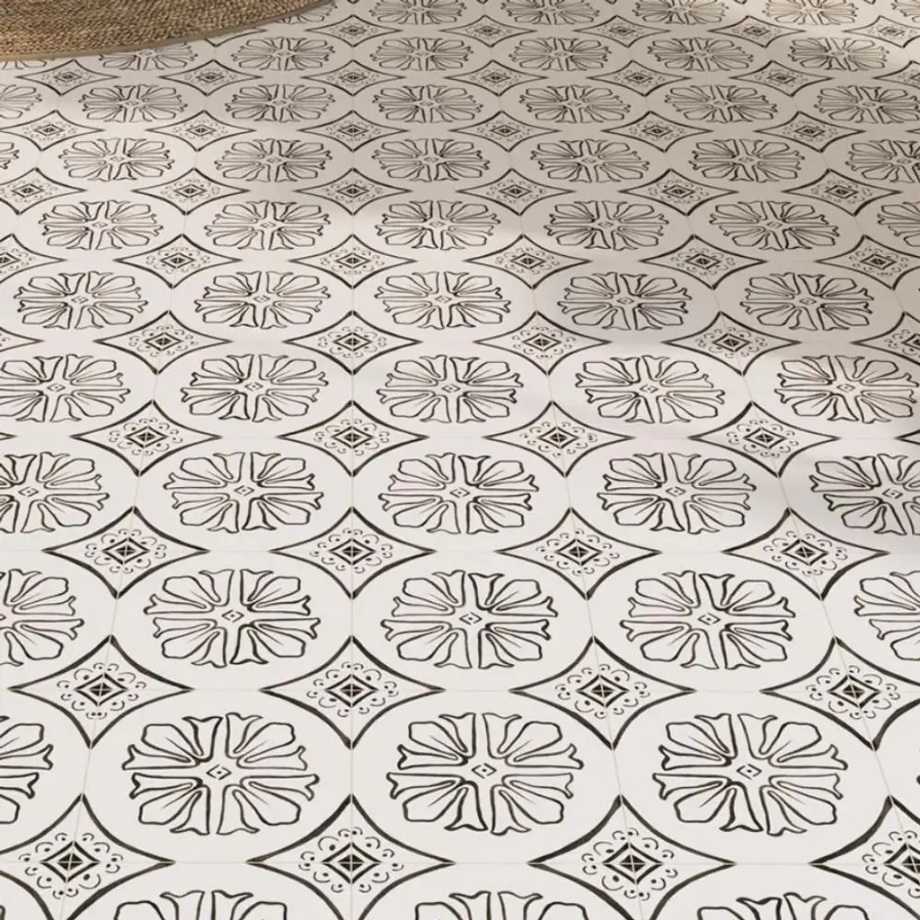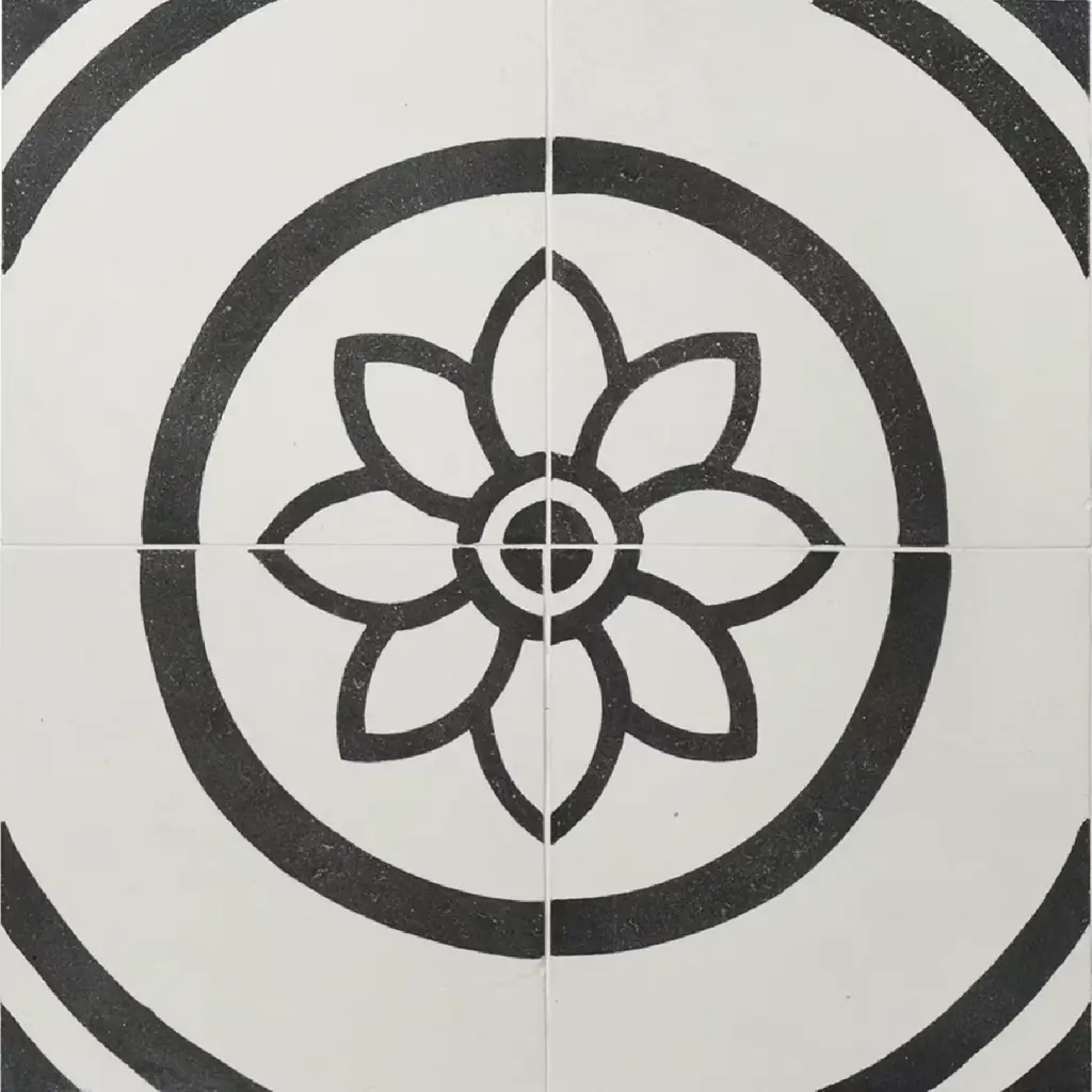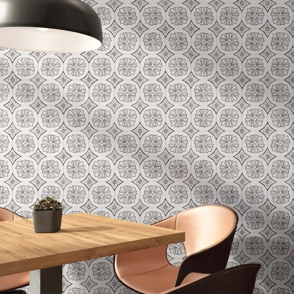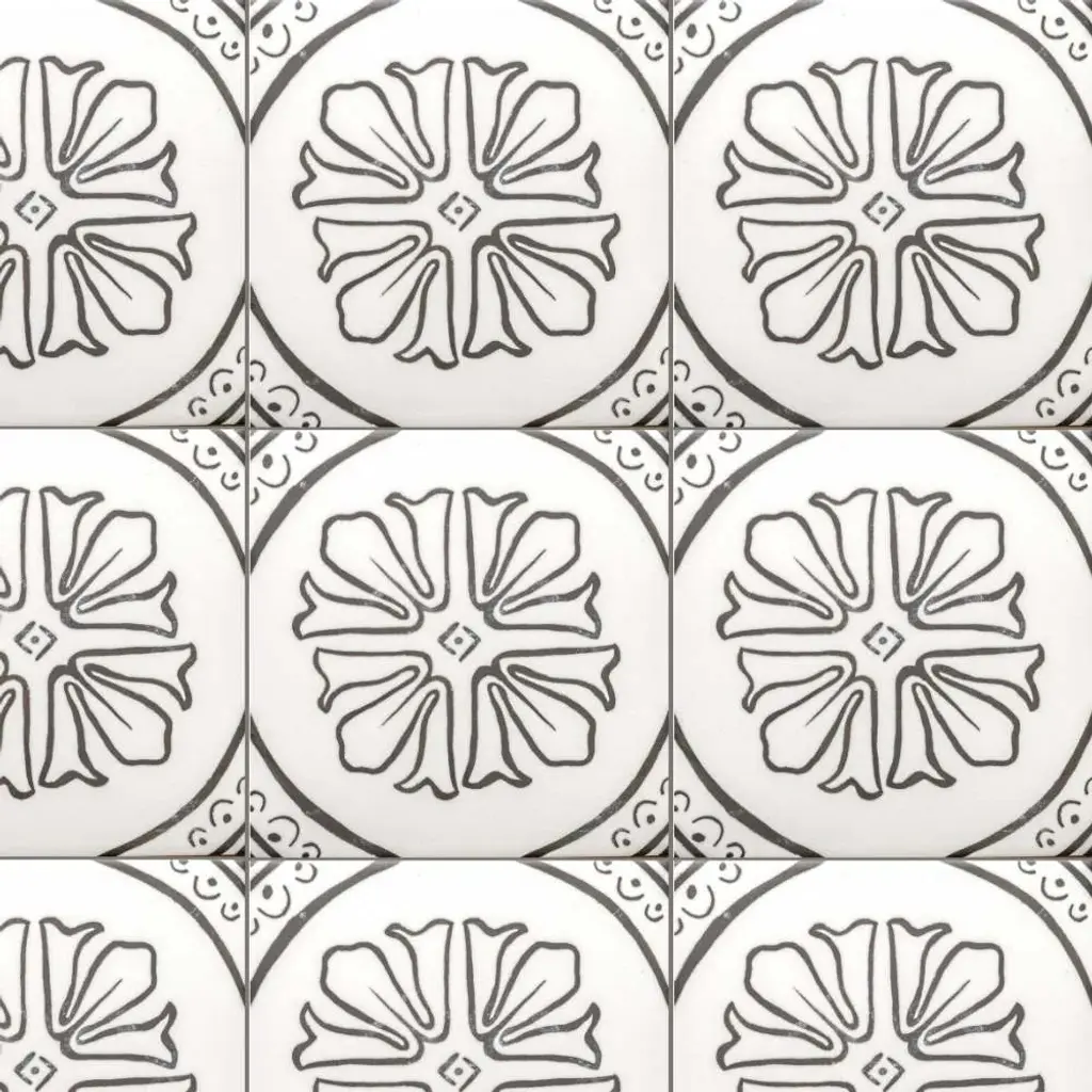 Crafted in Spain, the Cadence collection captures the beauty of intricate pattern work on a smooth, matte porcelain surface, bringing a sense of quiet artistry to any space. Inspired by traditional encaustic designs, each tile carries a depth of detail that feels both rich and effortless. Available in four versatile shades—Sky, Noir, Black, and Grey—Cadence adapts beautifully to both indoor and outdoor settings, lending a touch of old-world craftsmanship to modern surroundings. Whether underfoot or as a statement wall, it brings a rhythmic flow to the spaces it inhabits. FEATURES: A case of this product includes 25 pieces and covers 6.03 square feet Porcelain, singular, geometric, encaustic, patterned, matte, pressed, straight edge floor and wall tile Impervious and waterproof; Withstands sun and rain Matte finish with a shade 1 rating/ variation (V1 uniform appearance) Made in Spain Crafted from durable, long-lasting porcelain Features a modern, subtle matte finish Available in four (4) versatile colors: Sky, Noir, Black, and Grey Intricate encaustic patterned design to peak visual interest Suitable for interior and exterior spaces This product has a PEI rating of 3 (endurance and hardness indicator) and therefore is suited for residential countertops, walls, and medium-traffic floors Ideal for backsplashes, bathrooms, showers, kitchens, outdoors, pools, floors, walls Approved for residential and commercial installations Easy to install 6 inches x 6 inches decorative geometric pattern porcelain floor and wall tile DIMENSIONS: Individual tile size: 6 inches L x 6 inches W Surface area per carton: 6.03 square feet Sample tile size: Full size 6 inches L x 6 inches W