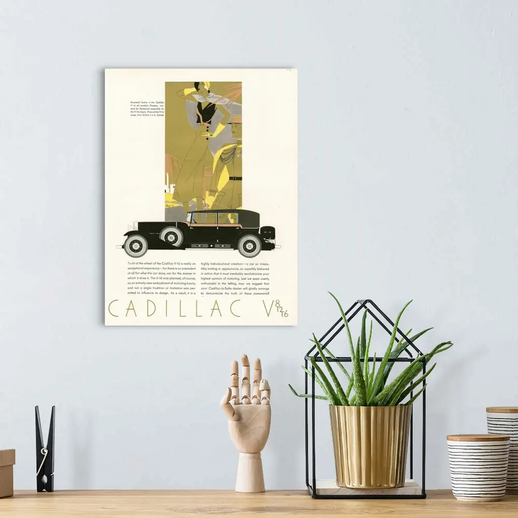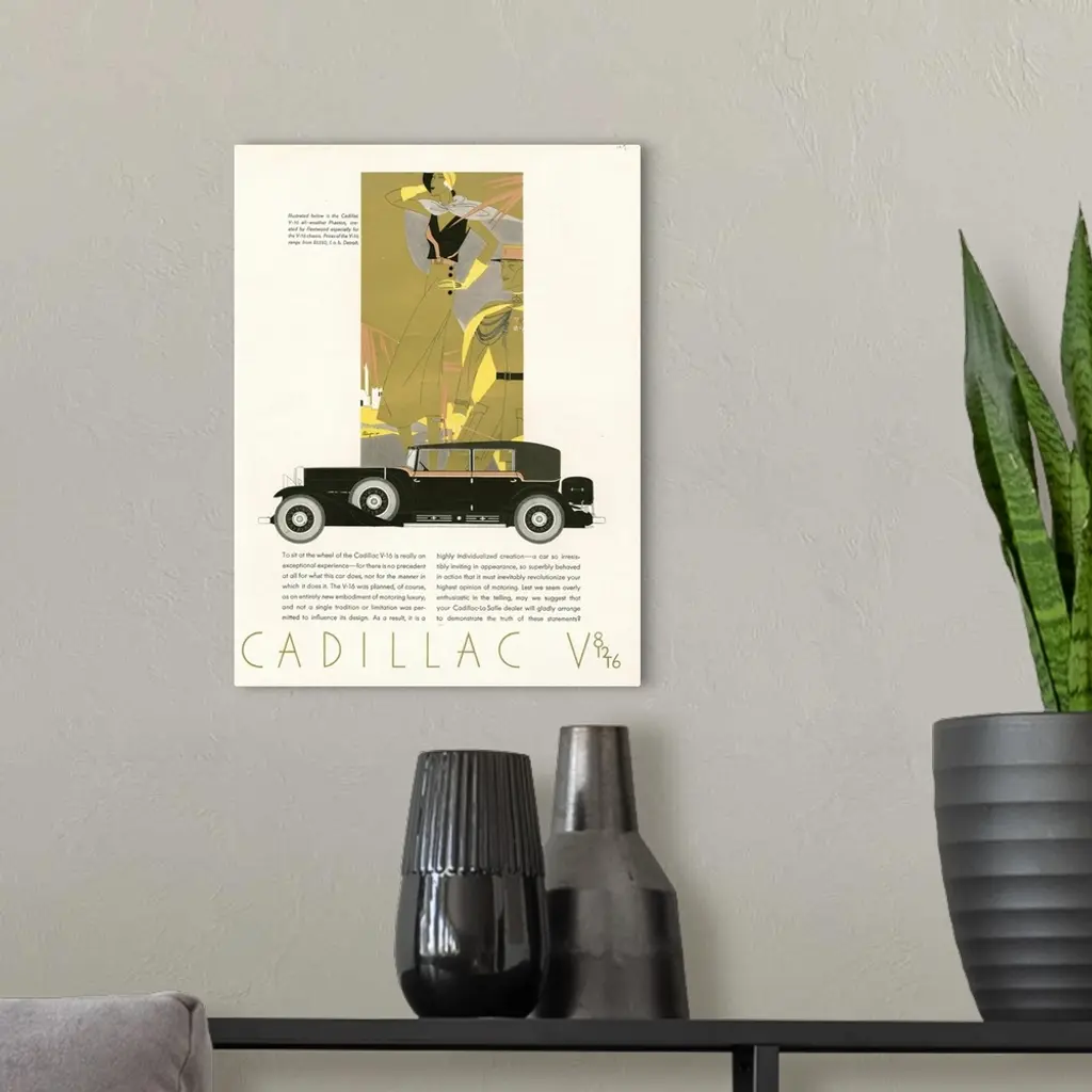 Cadillac V-16 Automobile Advertisement wall art for home and office decor. Discover canvas art prints, photos, mural, big canvas art and framed wall art in GreatBigCanvas.com's varied collections.
