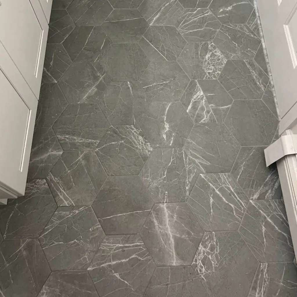 The Cadiz collection is a shining example of the fresh, modern visuals a classic hexagon tile can bring to your home. This collection offers design versatility through its three different color ranges. Each tile has distinctive vein patterns to create a diverse look in each placement. Cadiz is presented in an 8"x9" hexagon body with a beautiful sugar finish, making it perfect for any wall or floor placement. FEATURES: DIMENSIONS: