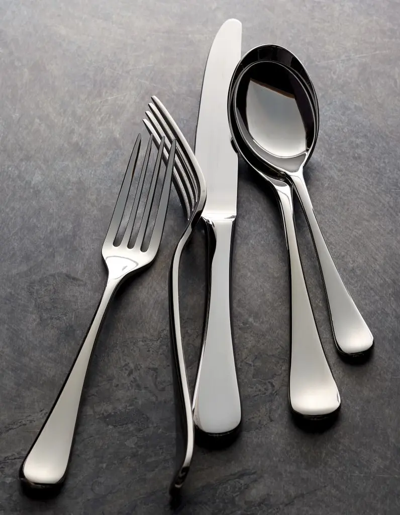 Designed by Robert Welch Designs in the English Cotswolds, this classically styled pattern with well-balanced, comfortable heft and a beautiful, bright mirror finish is a much-anticipated addition to our Caesna collection of individual specialty serving pieces.Includes four 5-piece placesettings.