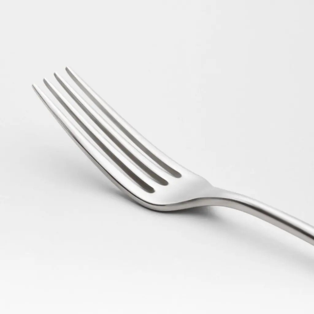 A pleasure to hold and behold, this dinner fork by Robert Welch is versatile enough to complement any table setting. The stainless steel utensil suits everyday meals and festive feasts. Well-balanced and comfortable in hand with a softly rounded handle, its classic design has an attractive brushed finish. Our Caesna satin flatware collection is a Crate & Barrel exclusive.
