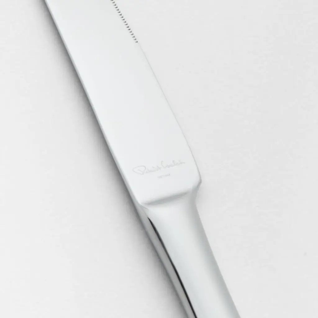 A pleasure to hold and behold, this dinner knife by Robert Welch is versatile enough to complement any table setting. The stainless steel utensil suits everyday meals and festive feasts. Well-balanced and comfortable in hand with a softly rounded handle, its classic design has an attractive brushed finish. Our Caesna satin flatware collection is a Crate & Barrel exclusive.