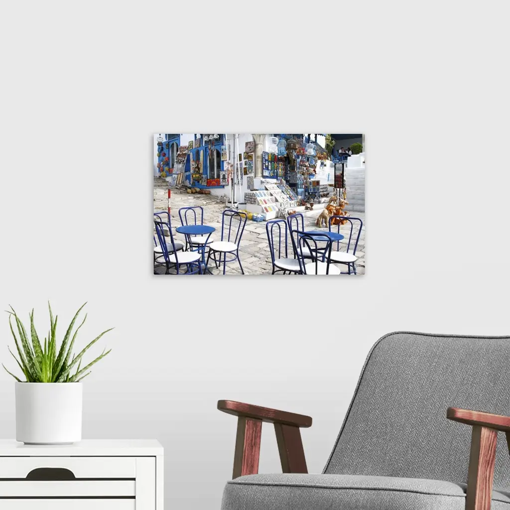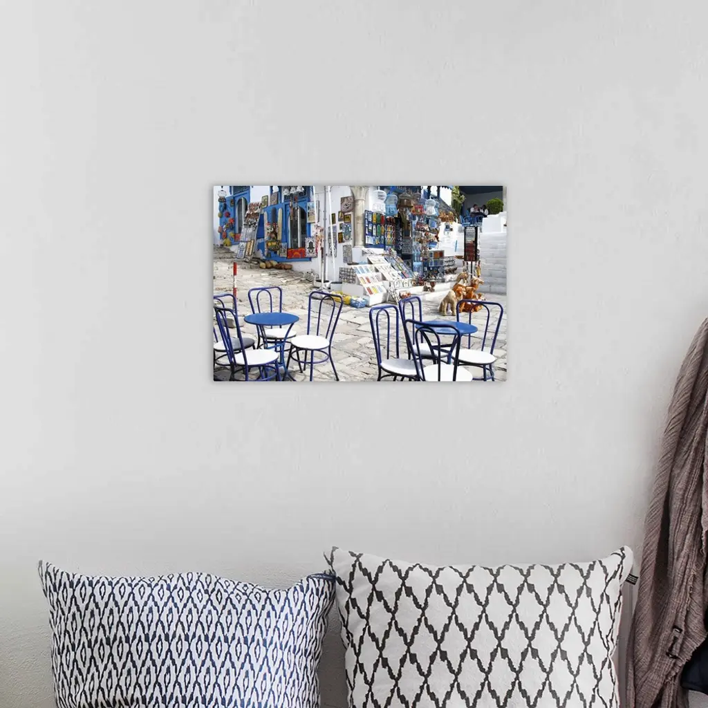 Cafe and souvenir shop, Sidi Bou Said, Tunisia, North Africa, Africa wall art for home and office decor. Discover canvas art prints, photos, mural, big canvas art and framed wall art in GreatBigCanvas.com's varied collections.