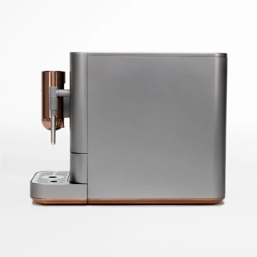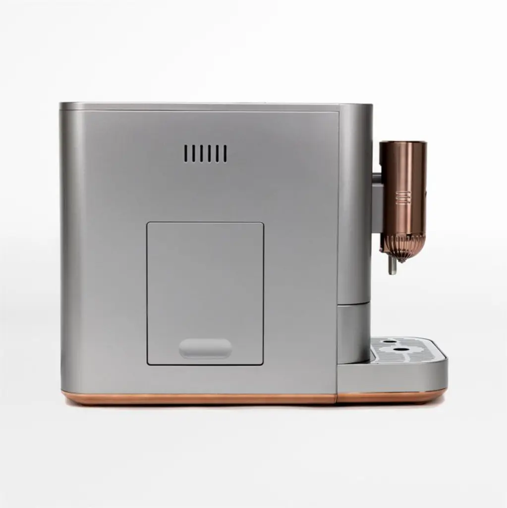 Adorn your counter with this handsome machine designed to deliver exceptional espresso. The built-in grinder offers five grinding levels, and the pre-infusion feature extracts the optimal flavor from your coffee grounds. With the push of one button, the AFFETTO dispenses espressos, Americanos, hot water or My Cup beveragesuse the app to customize the My Cup option exactly to your preferencesand the steam wand froths milk to create flat whites, cappuccinos, lattes and cafe au laits. Accented in rosy brushed copper, the stainless steel machine graces the kitchen with a compact footprint, sleek silhouette, modern palette and glam details.