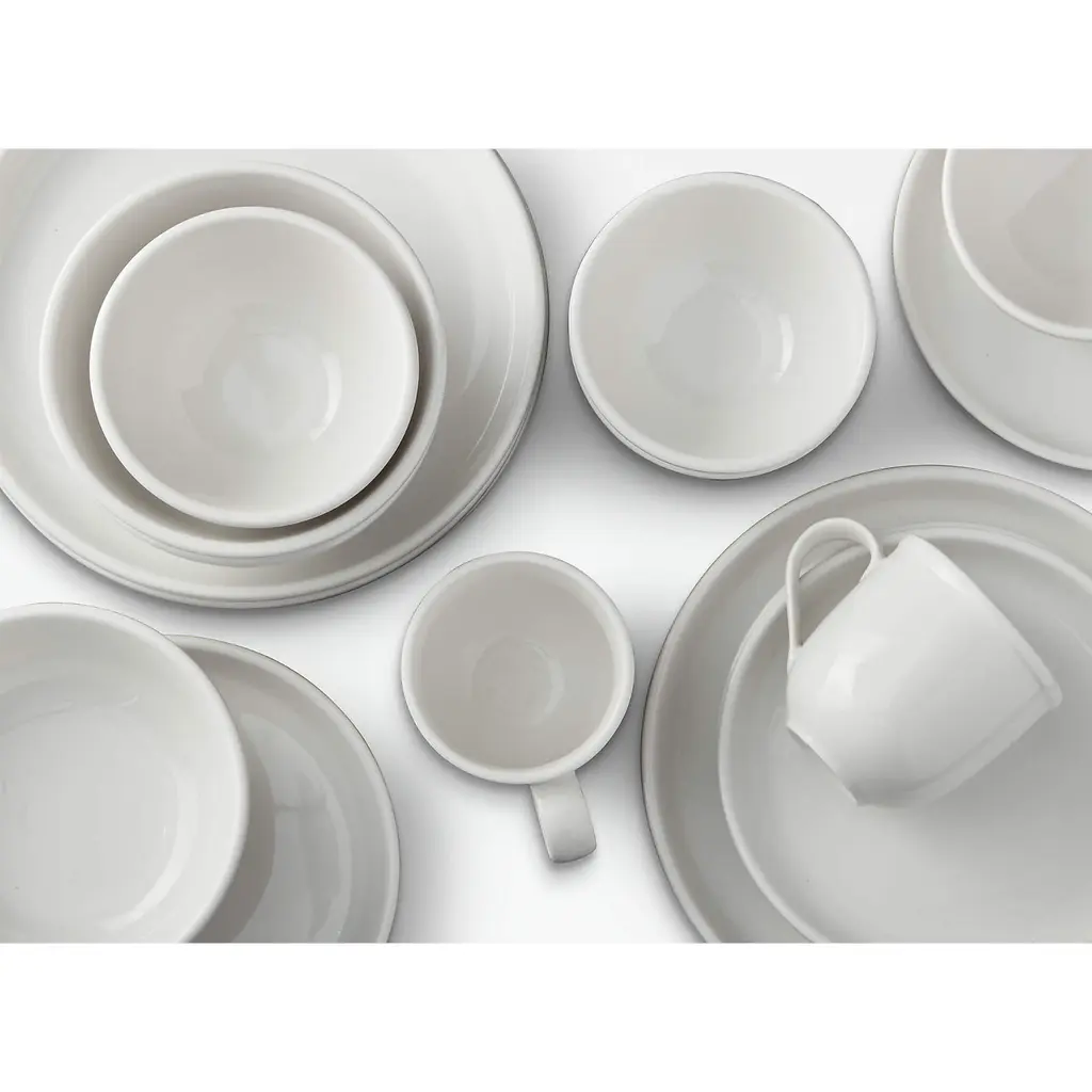 Enjoy café society right at home with the fresh, friendly appeal of one of our most popular dinnerware sets. Glazed in bright white, this porcelain pattern creates a charming café-style table setting. The deep salad plate is durable, great for everyday use serving up sandwiches, salads and slices of cake.