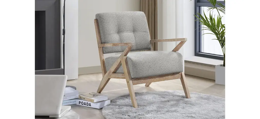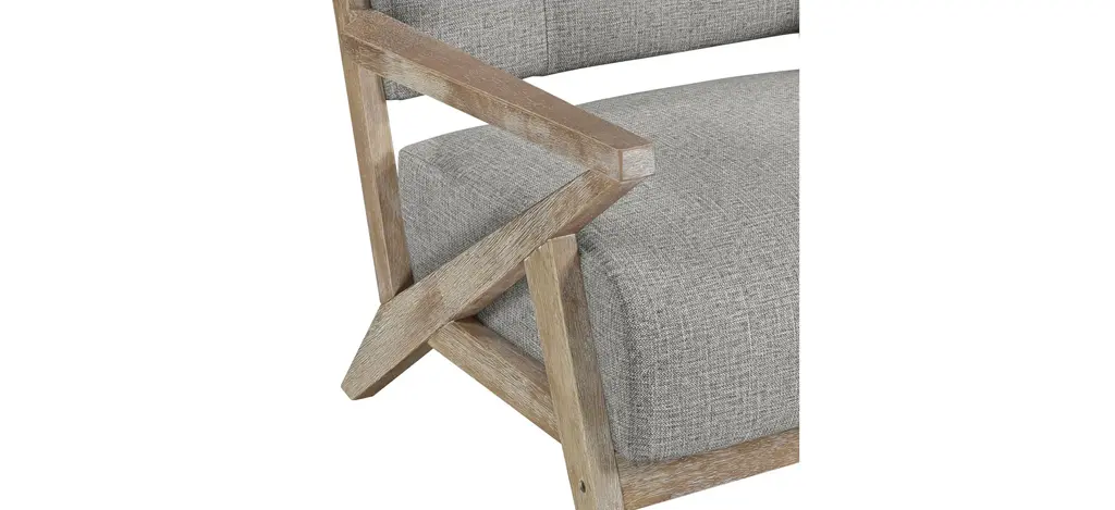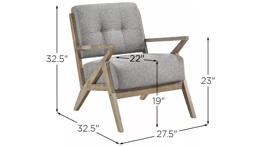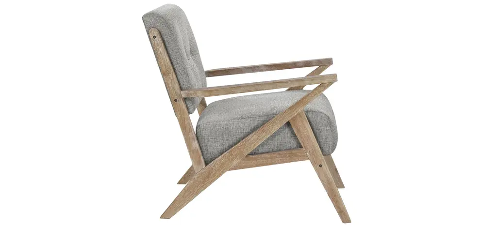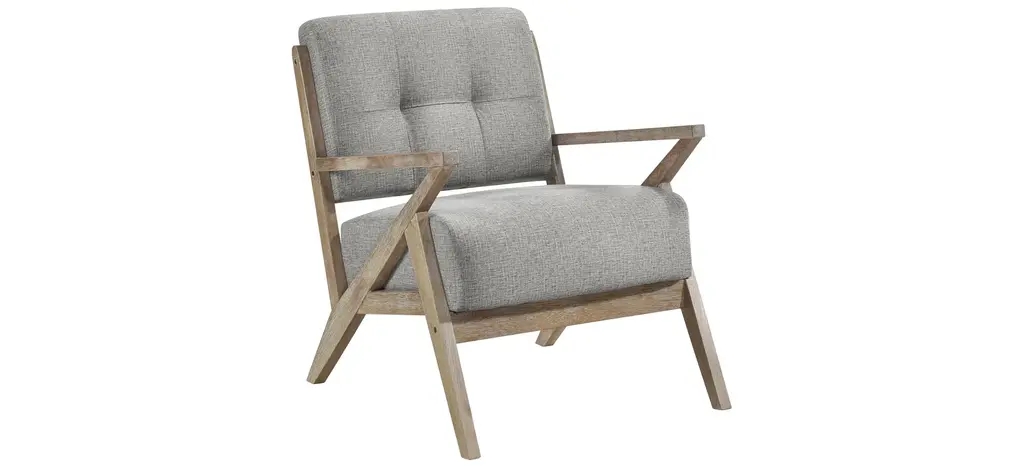 Angled lines intersect to create the modern profile of the Cagle Accent Chair. The rusticated solid wood frame is highlighted with an antique walnut finish. The gray fabric upholstery that covers the seat and back of the chair will serve as a complement to your home's decor. The padded seatback features tufted contouring for added accent.