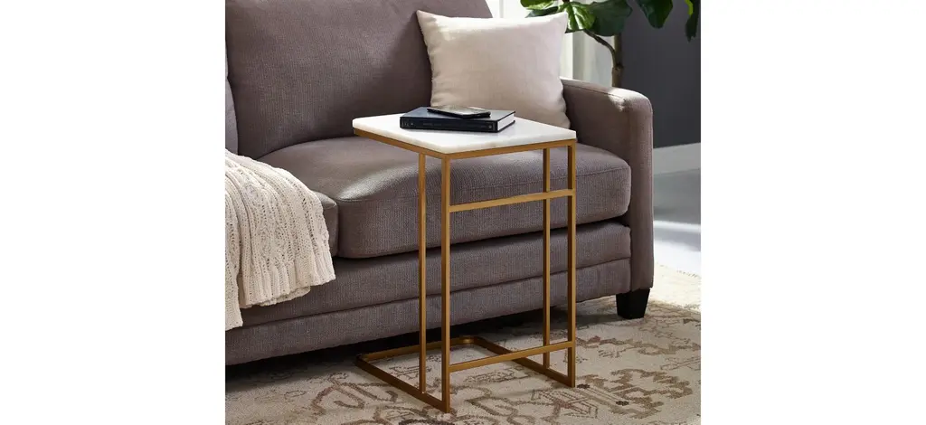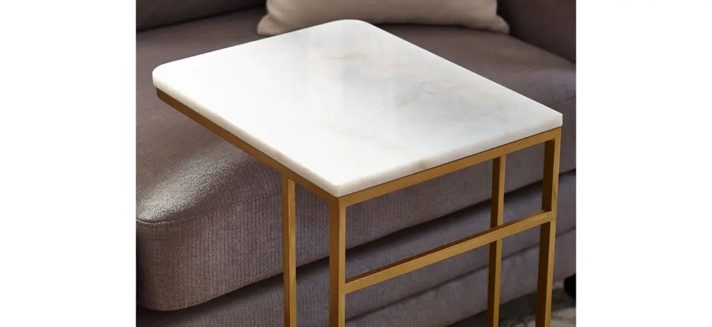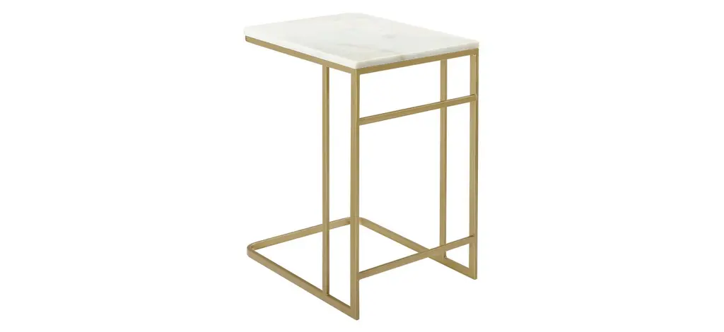 Nosh in glamourous style with this Cahill Marble C Table sliding under your sofa. Rich gold frames this marble TV tray in sleek shimmer, while the small space approved profile slips into tight spaces.