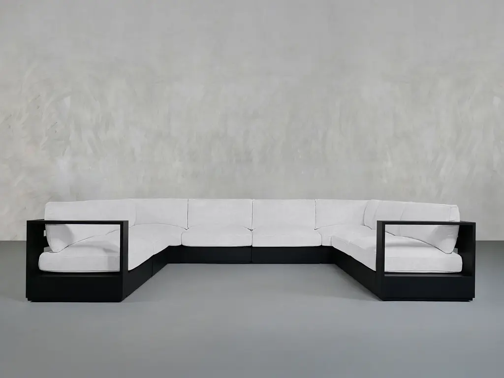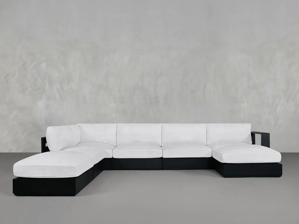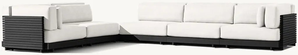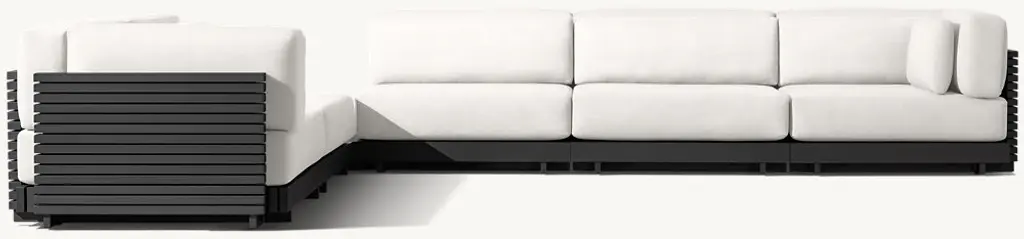 Renowned Spanish architect Ramón Esteve looks to the 1950s International Style in the Caicos collection, echoing his singular approach to the built environment. As in his award-winning structures, Esteve utilizes the strength and simplicity of a pure linear form – here employing rows of parallel slats in durable aluminum – to offer a bold play of contrast and shadow. The result is a series of modular components that define a space. Modular components are available individually, allowing you to customize the configuration of your choice. ALSO AVAILABLE IN TEAK SHOP THE ENTIRE COLLECTION