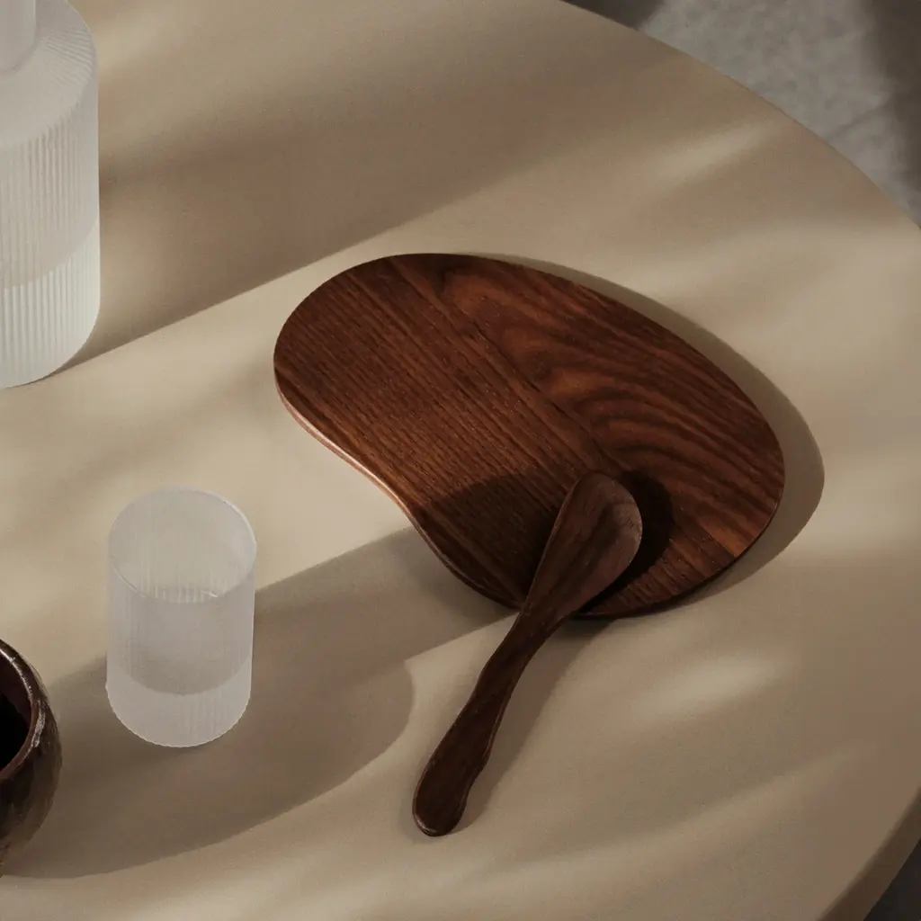Looking for an elegantly designed, responsibly crafted base for your famous butter boards? Meet the Cairn Butter Boards by ferm LIVING. Inspired by cairn stones, they’re carved with soft curves and sculpted details that lend an artistic flair to your dinner party. Crafted from solid FSC™ certified ash wood with a distinctive carbonized finish, they not only symbolize mindful design, but also respect for our environment. The perfect gift for the consummate host. These beauties are best kept out of the dishwasher. Their organic shapes, achieved through careful polishing, may lead to variations in size and color, making each piece truly unique. Note that the charred wood's earthy scent will gently fade over time, leaving behind just the warmth of the natural wood.