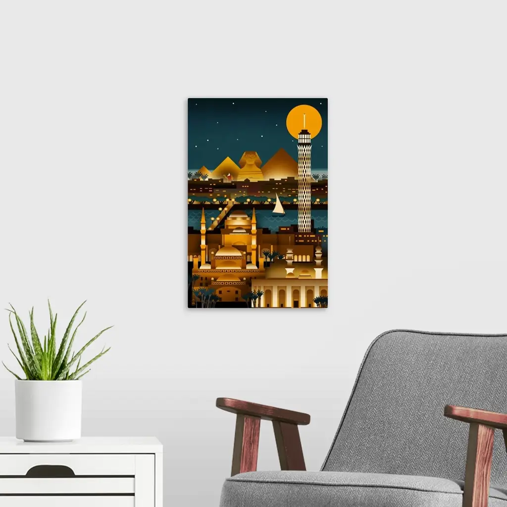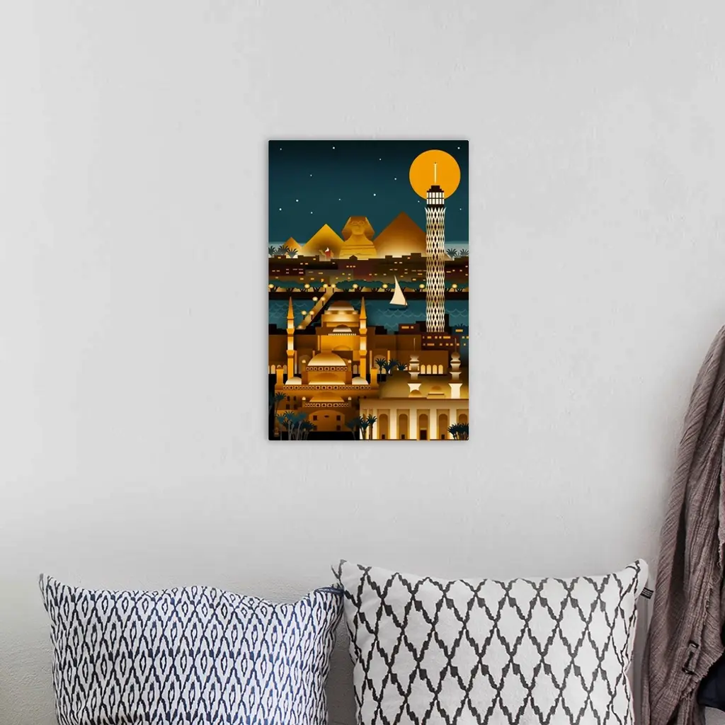 Cairo, Egypt, Retro Skyline wall art for home and office decor. Discover canvas art prints, photos, mural, big canvas art and framed wall art in GreatBigCanvas.com's varied collections.