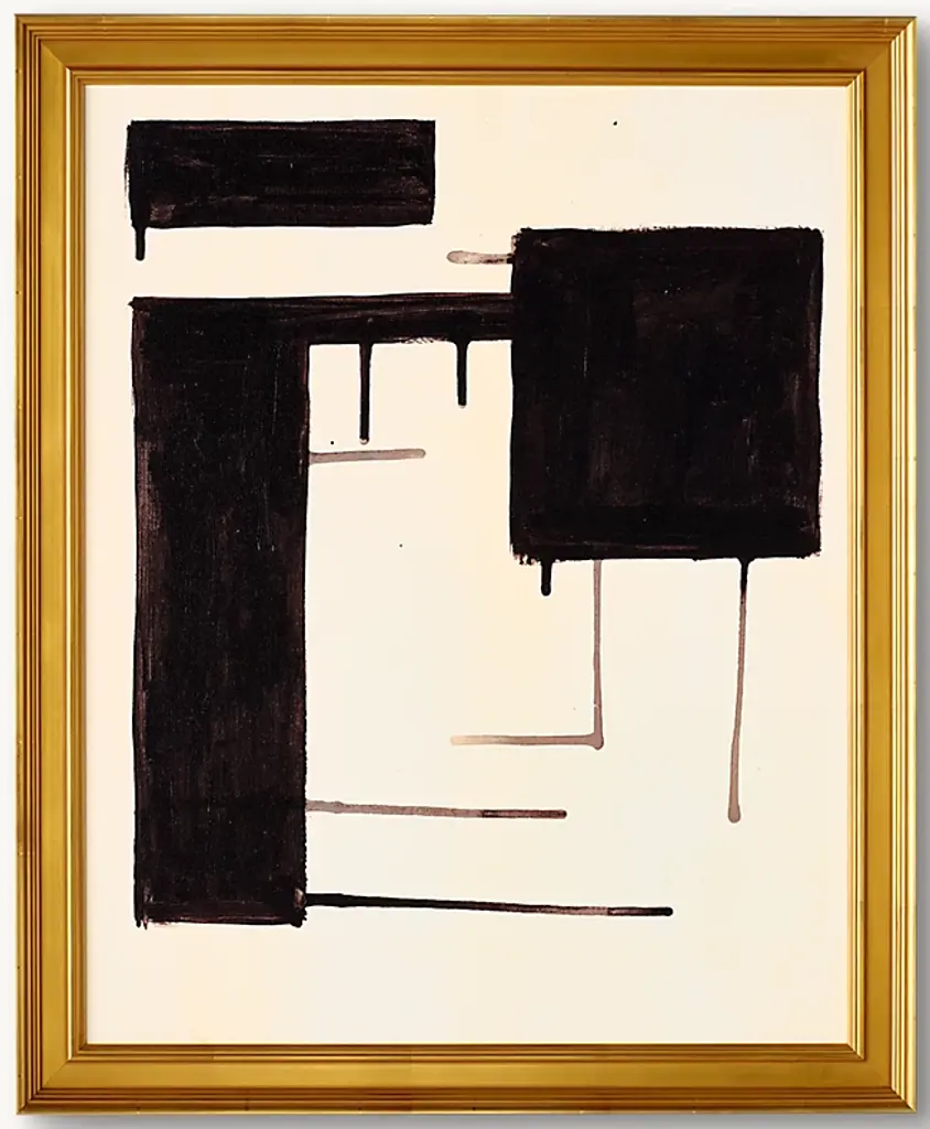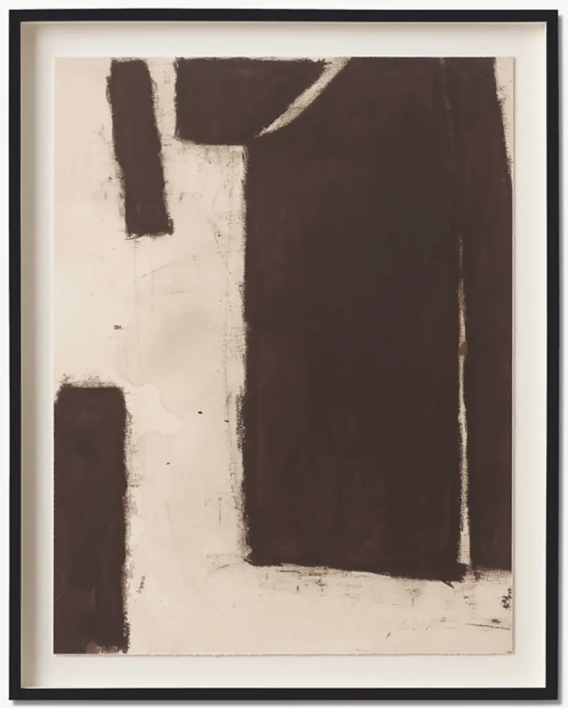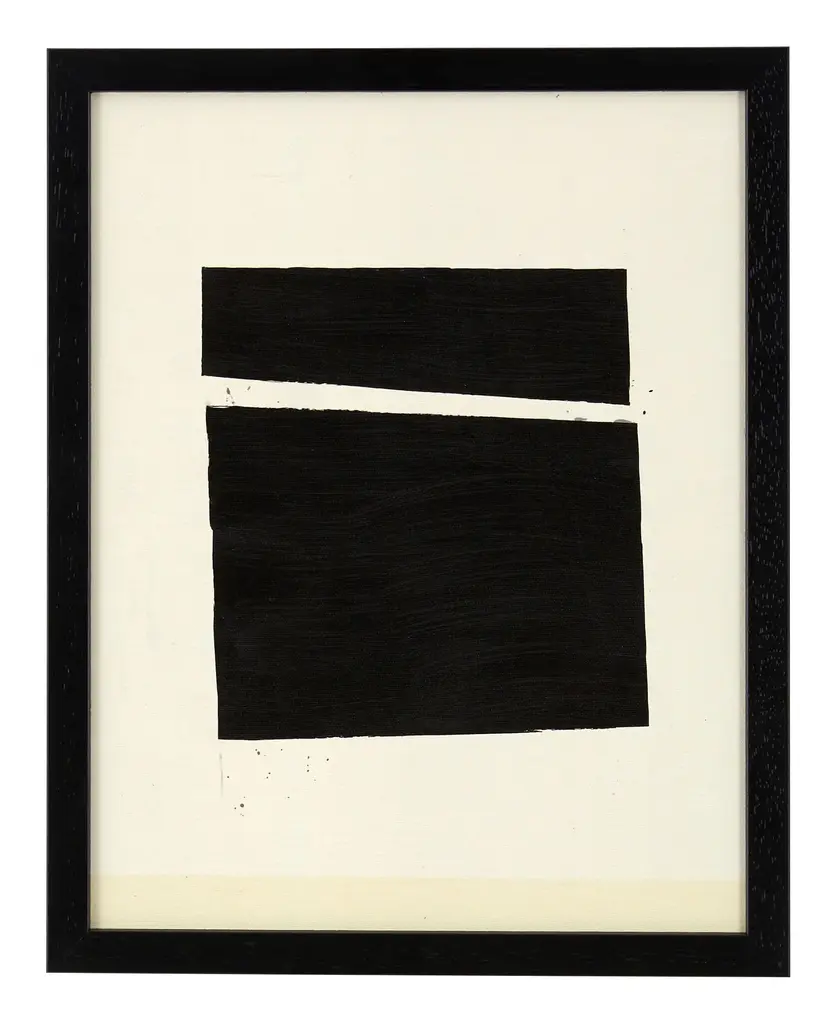 Recalling the spartan beauty of 1950s Brutalist architecture, Caitlin Dinkins & Minh Nguyen's series is marked by bold brushwork and a graphic color scheme. The ivory ground is layered with velvety black shapes – detached, yet seemingly in dialogue with one another. Their abstract geometry and uneven contours are at once powerful and poetic.