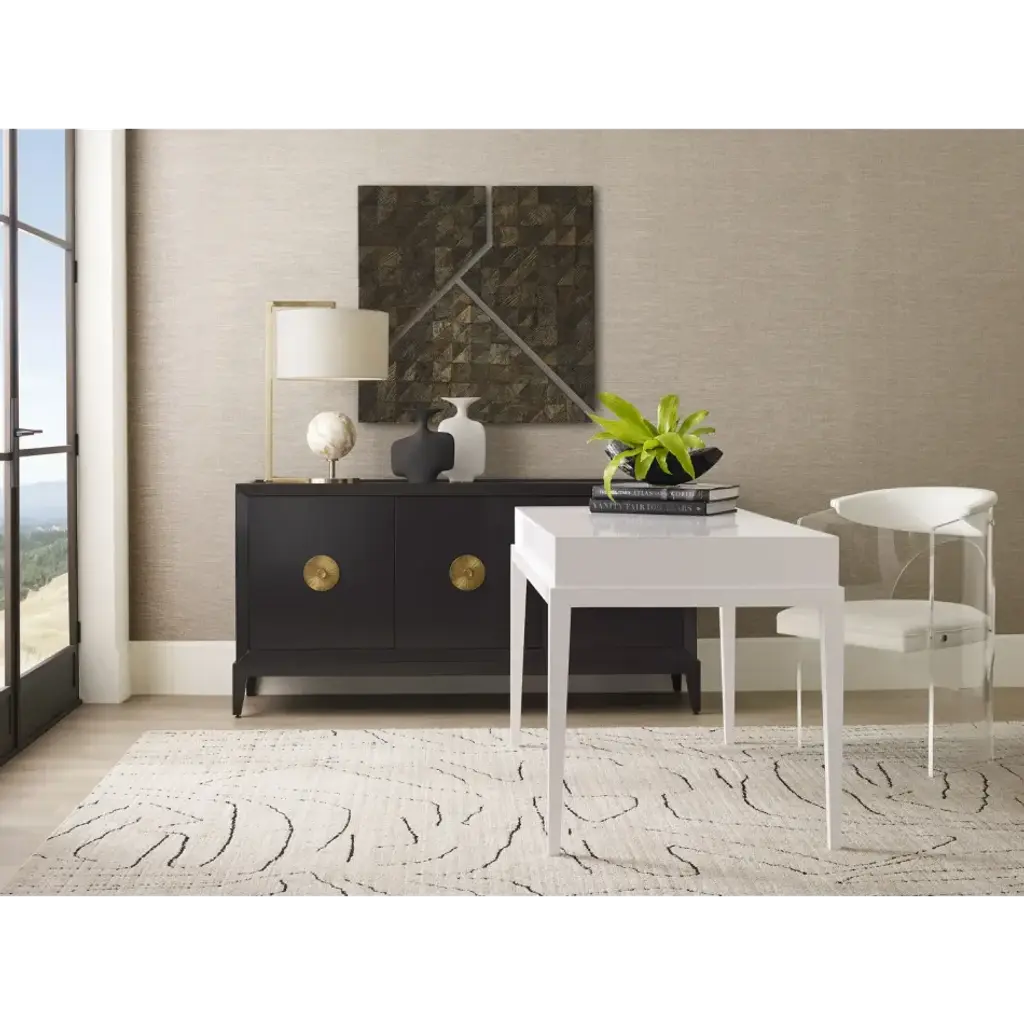 Calabria lamp features a ball of natural calacatta gold marble supported on a metal base with a warm coffee bronze finish and topped wiht an off white linen drum shade. This combination of mixed materials creates an ideal accent lamp that will function as a primary decorative piece, illuminating any elegant modern space.