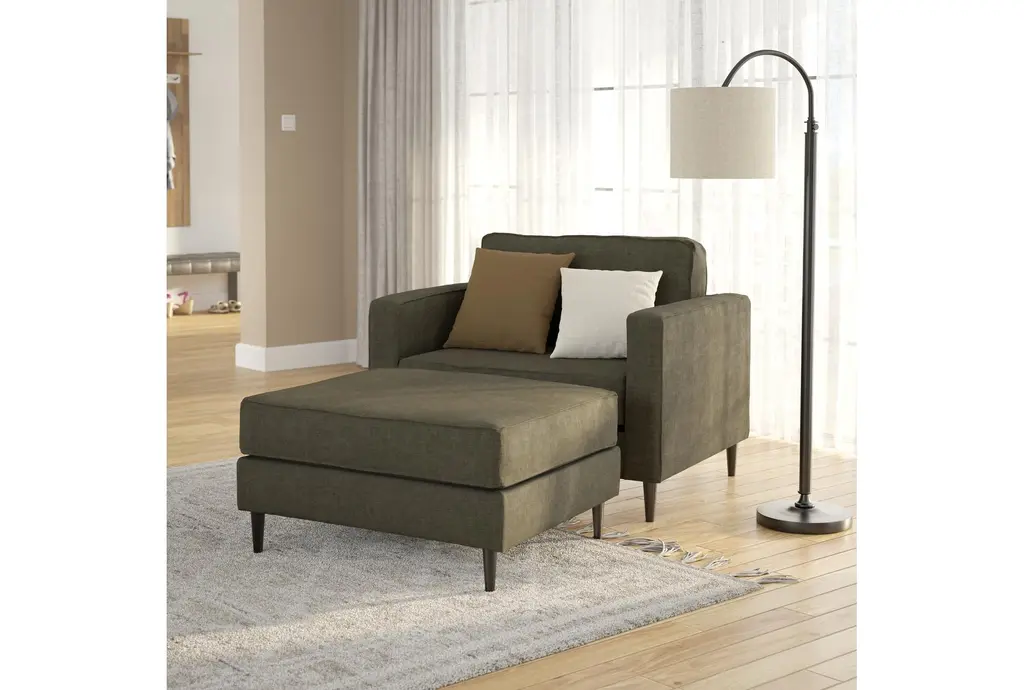 The Calais III Green Modern 2 Piece Chair|Ottoman Set is perfect for any living room. The set includes a comfortable chair and a matching ottoman, providing both style and functionality. Upholstered in 100% polyester fabric, this set is designed to withstand daily use.