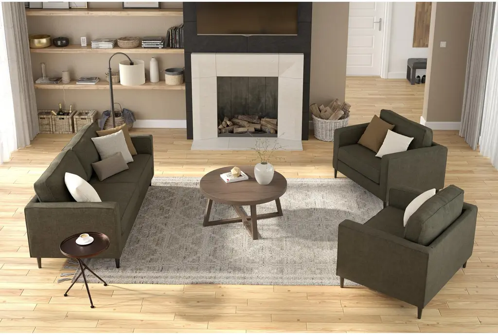 Calais Iii Green Modern 3 Piece Sofa|2 Chair Set
