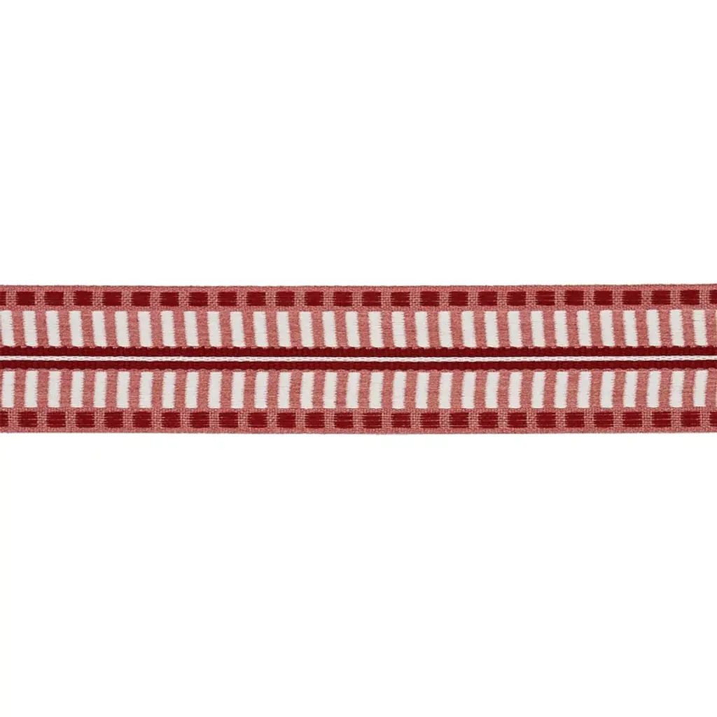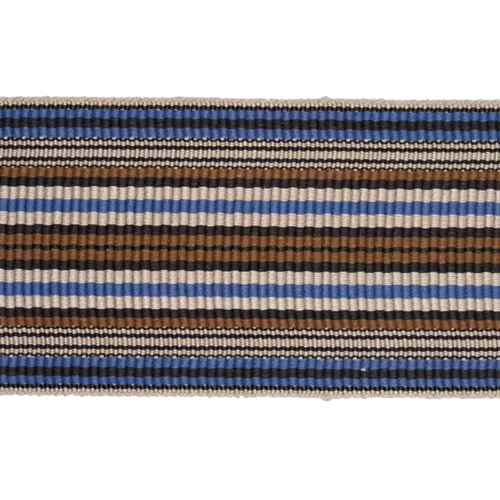 Simple yet sophisticated, Calcada tape is a versatile, rhythmic, chunky woven geometric stripe that adds style and texture to furniture, window treatments, or pillows. 59% cotton, 41% linen. Sold as a 2-yard minimum.