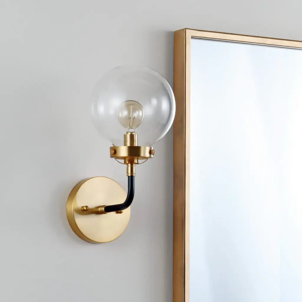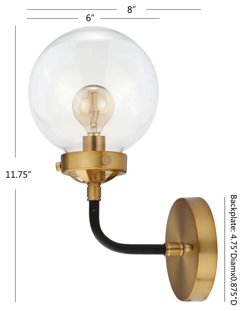 Steel construction never looked as good as with the styling of this contemporary wall sconce. The frosted white glass globes project soft lighting to the room while its antique brass finish bolsters a rustic yet modern atmosphere. Update your living space with this charming wall sconce''s clean looks.-Add a chic modern element to your space with this globe sconce in black and brass-As this fixture must be hardwired, we recommend a professional electrician manage installation.-Takes one bulb and compatible with any 5W LED or 25W Type "A" or 9W CFL-25W Edison bulb included-UL ListedColor: Black/Brass Gold-Body Material: Metal-Includes: One (1) lamp(s)Assembly RequiredLamp: 11.75 inches high x 6 inches wide x 8 inches deepAbout us: You see a lamp.We see a decorative work of art.A perfectly curved shade casts a dramatic shadow on a floor. A silk cord you never want to hide. LED lightbulbs: as easy on the environment as they are on the eyes. The JONATHAN Y Lighting collection considers every detail from impeccably sourced materials to designer styling. And our prices are so attractive, we''ve transformed a functional necessity into a fashion accessory.JONATHAN Y Lighting - a fashion revolution in home decor.