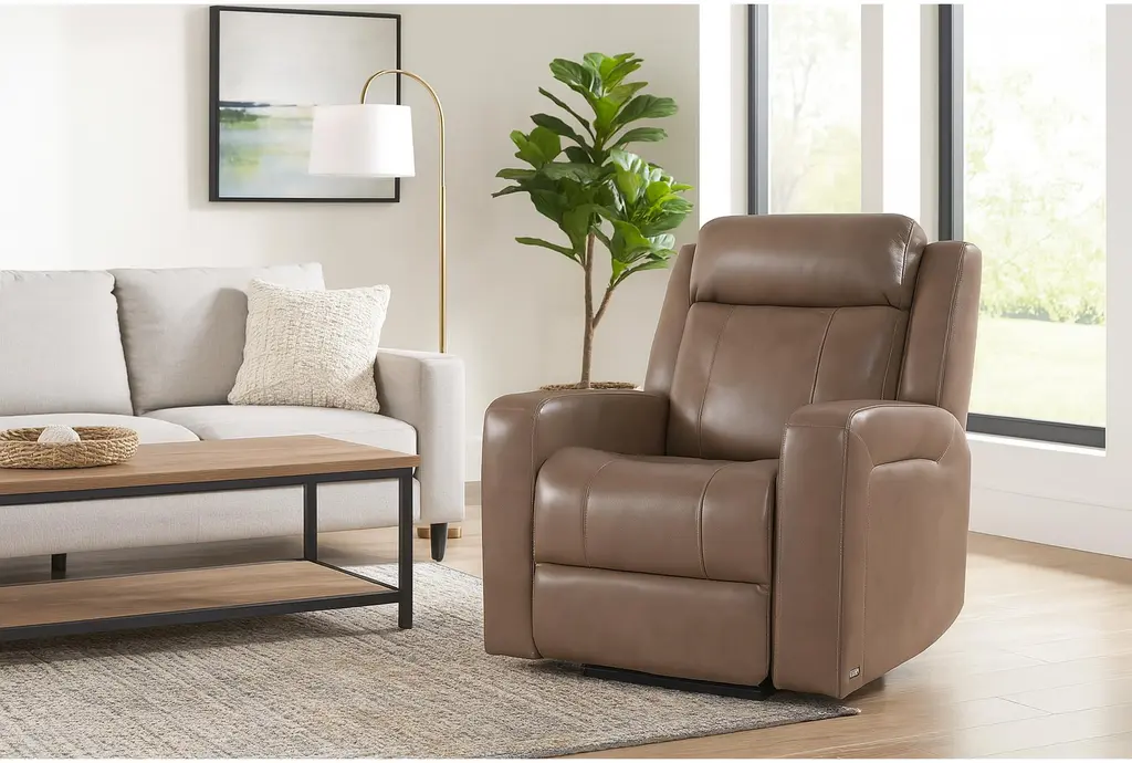 Experience unparalleled comfort and modern convenience with the Caleb Chestnut Leather Flexsteel Power Zero Gravity Recliner. Designed to elevate your relaxation, this recliner features a power headrest and USB port, offering both functionality and style. Upholstered in rich chestnut leather, it seamlessly integrates into any living room décor.