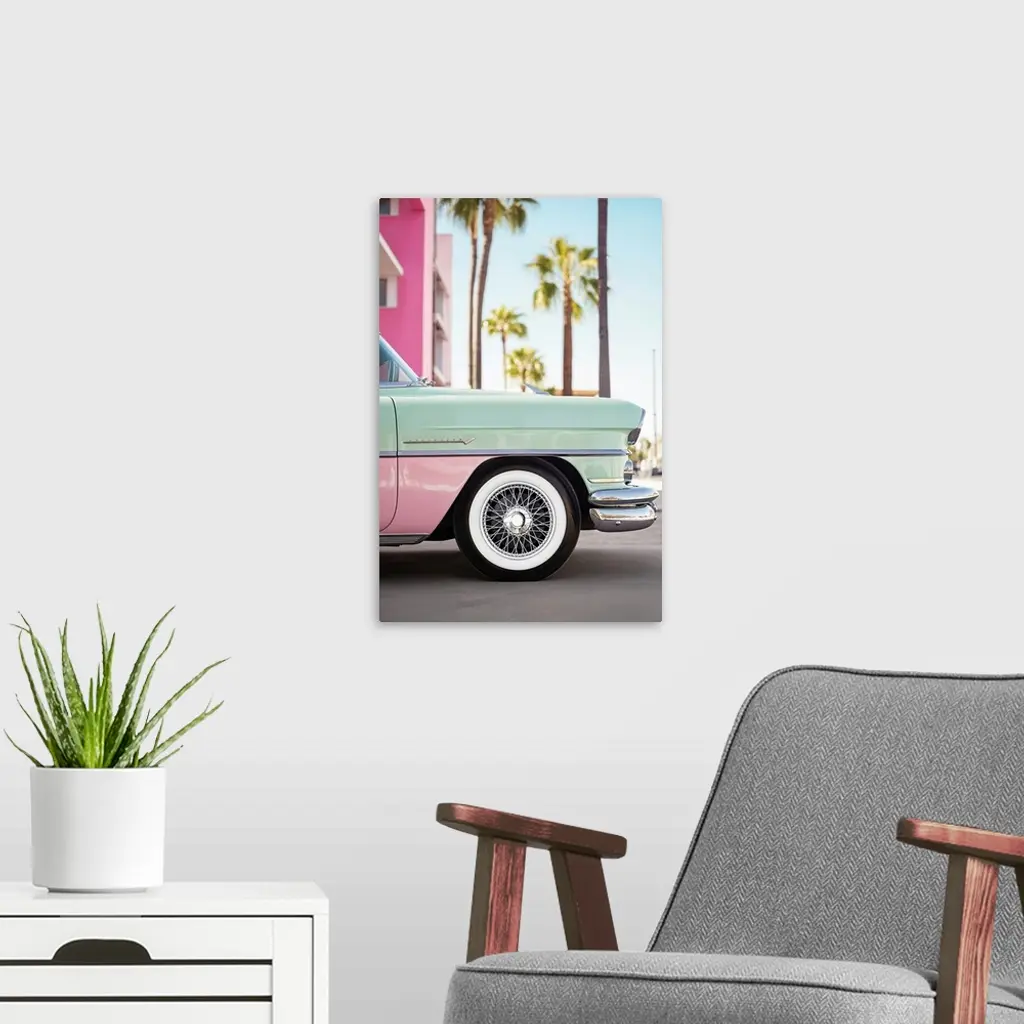 The "California Dreaming" collection was created and envisioned by the artist Philippe Hugonnard. This captivating new series will transport you to the enchanting atmosphere of the American West, particularly in Palm Springs and along the Californian coast. Comprising 100 exclusive images, this collection provides an immersion into a realm where pastel colors and stunning sunsets prevail, evoking the Californian dream and its unique aesthetic. Each image in the collection seems to be infused with soft light, creating a warm and nostalgic ambiance. California beaches are depicted with vibrant surfboards under the golden sun, capturing the laid-back spirit of coastal life. The iconic palm trees of Los Angeles stand majestically, adding an emblematic touch to the overall theme. The mid-century modern houses of Palm Springs, with their clean lines and avant-garde design, are highlighted in this collection, reflecting the city's iconic architecture. Each image appears to freeze time in the golden age of this unique architectural style. Carefully selected vintage cars add a retro and elegant touch to the collection, evoking the glorious era of automobiles and enhancing the sense of nostalgia emanating from each image. In summary, Philippe Hugonnard's "California Dreaming" collection offers an immersive and evocative visual experience, capturing the timeless beauty of the American West through unique images, vibrant colors, and an aesthetic that celebrates the Californian dream. Each image tells a story, transporting viewers on a visual journey to the heart of the iconic Palm Springs or the Californian coast.