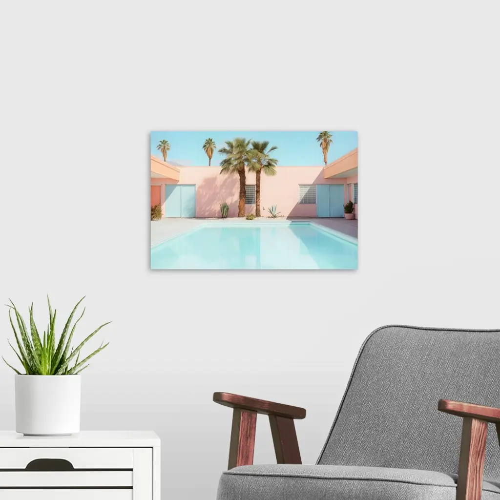 The "California Dreaming" collection was created and envisioned by the artist Philippe Hugonnard. This captivating new series will transport you to the enchanting atmosphere of the American West, particularly in Palm Springs and along the Californian coast. Comprising 100 exclusive images, this collection provides an immersion into a realm where pastel colors and stunning sunsets prevail, evoking the Californian dream and its unique aesthetic. Each image in the collection seems to be infused with soft light, creating a warm and nostalgic ambiance. California beaches are depicted with vibrant surfboards under the golden sun, capturing the laid-back spirit of coastal life. The iconic palm trees of Los Angeles stand majestically, adding an emblematic touch to the overall theme. The mid-century modern houses of Palm Springs, with their clean lines and avant-garde design, are highlighted in this collection, reflecting the city's iconic architecture. Each image appears to freeze time in the golden age of this unique architectural style. Carefully selected vintage cars add a retro and elegant touch to the collection, evoking the glorious era of automobiles and enhancing the sense of nostalgia emanating from each image. In summary, Philippe Hugonnard's "California Dreaming" collection offers an immersive and evocative visual experience, capturing the timeless beauty of the American West through unique images, vibrant colors, and an aesthetic that celebrates the Californian dream. Each image tells a story, transporting viewers on a visual journey to the heart of the iconic Palm Springs or the Californian coast.