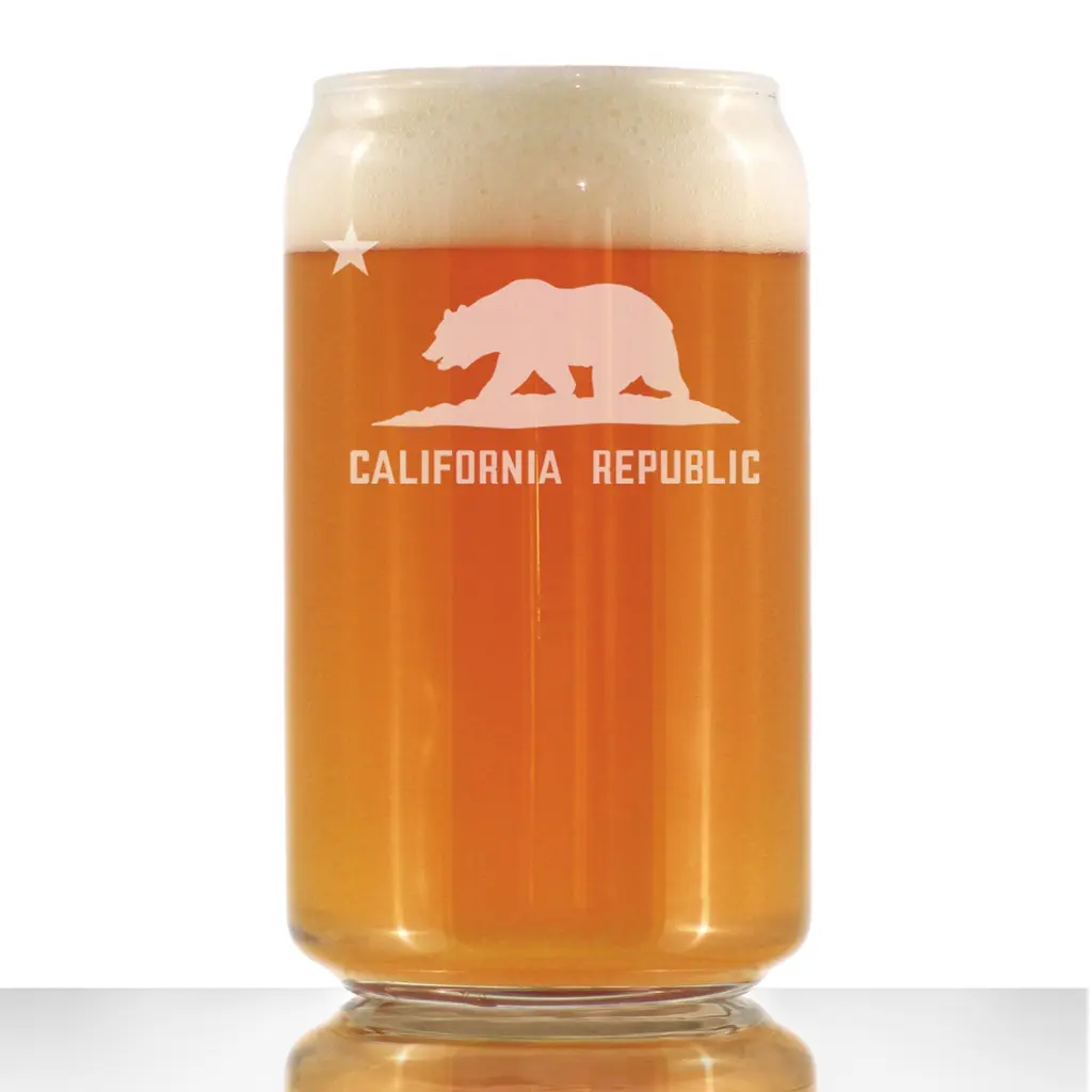 Show off your California pride with this 16-ounce beer can pint glass featuring a custom engraved California flag design - the perfect gift and decor for any California enthusiast.Features Bar Quality Pint Glasses - 16 oz beer can shaped pint glass suitable for a hoppy ipa, a refreshing pilsner, or delicious craft stoutHand Engraved (not printed) - The design is engraved by hand and will never wear offDishwasher safe! Great for daily useAll Bevvee glasses are individually gift boxed and protected for safe deliveryEach detail is carefully engraved by hand by skilled artisans in our small shop in Northern Colorado