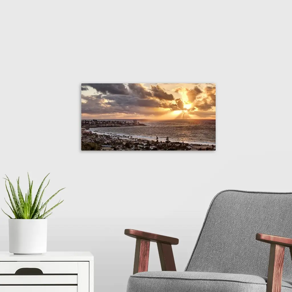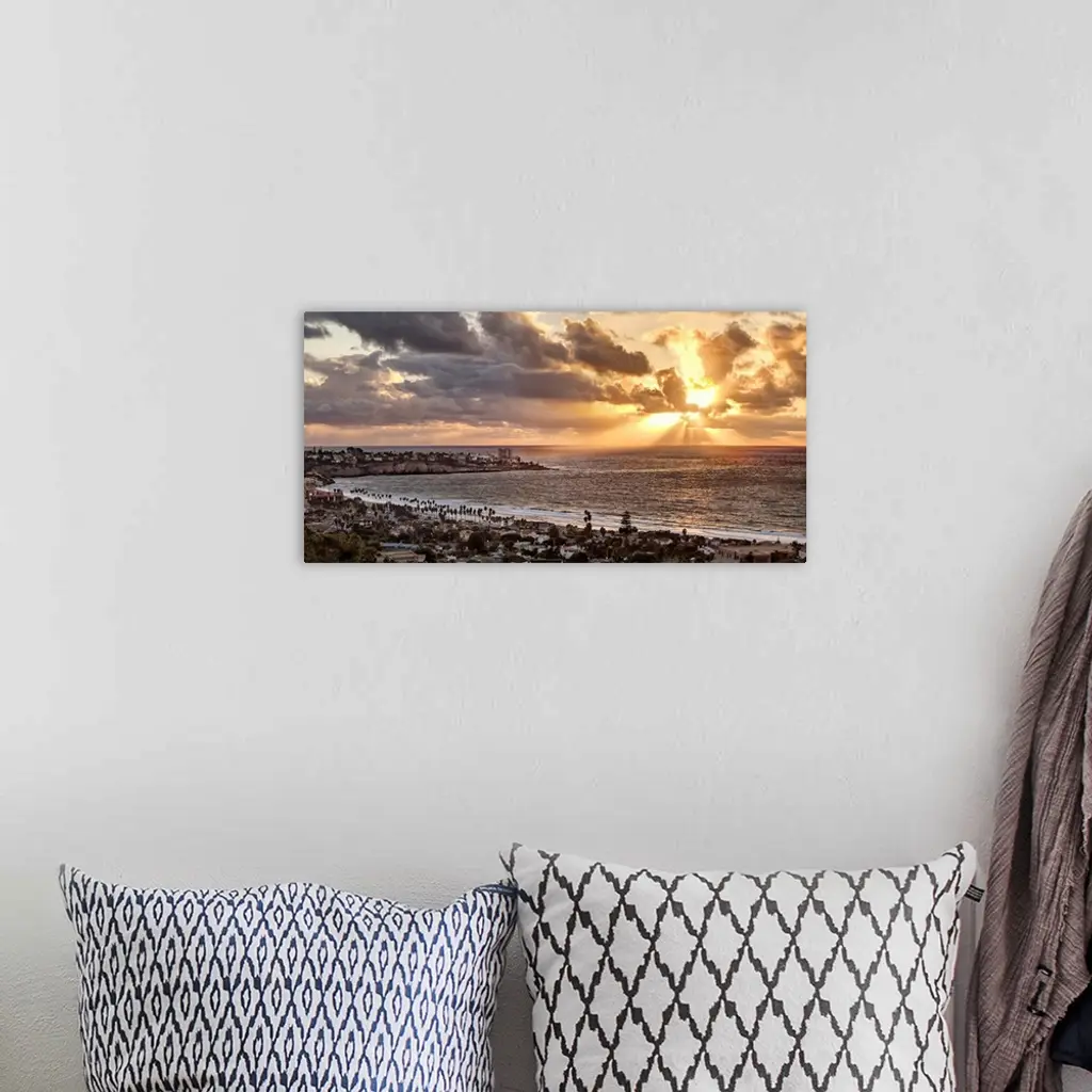 California, La Jolla, Panoramic View Of La Jolla Shores And The Village At Sunset