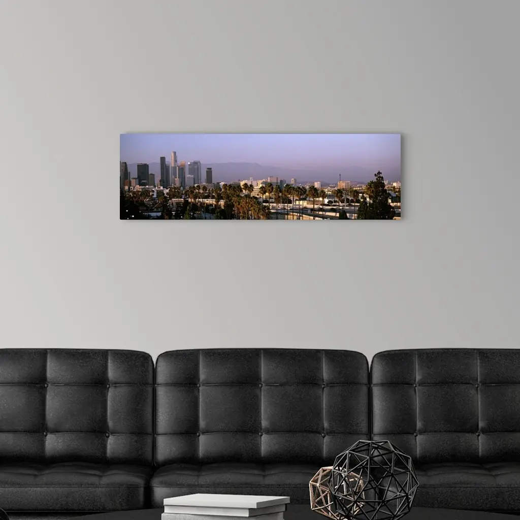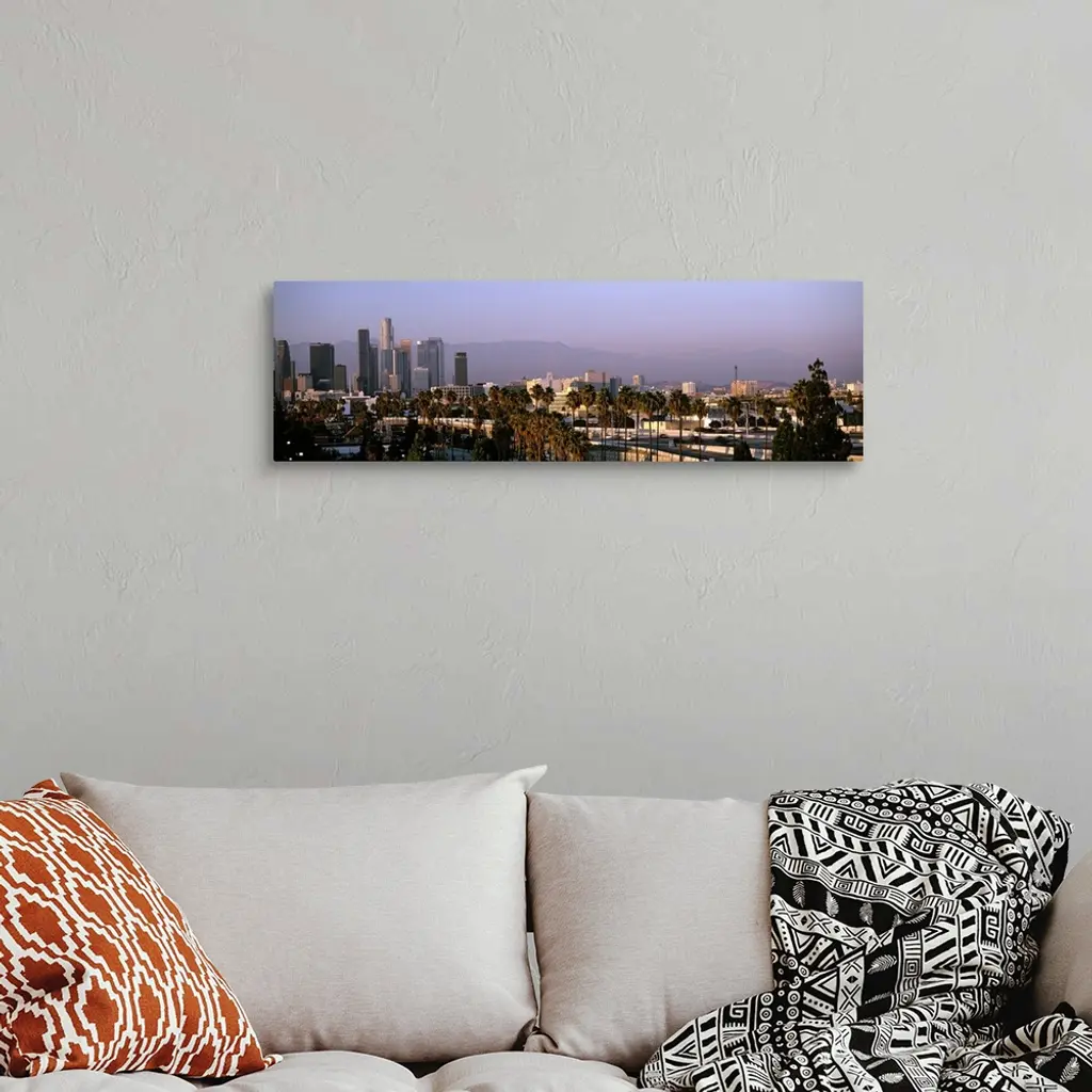 Panoramic photograph of cityscape under fog with mountain silhouette in the distance.