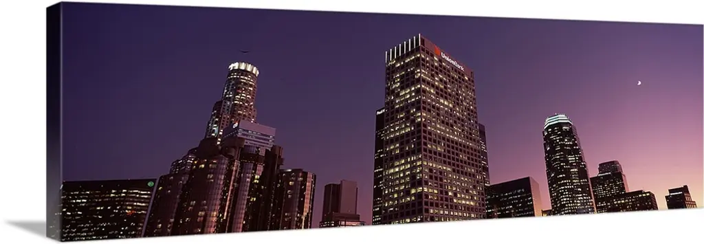 California, Los Angeles, Skyline at dusk wall art for home and office decor. Discover canvas art prints, photos, mural, big canvas art and framed wall art in GreatBigCanvas.com's varied collections.