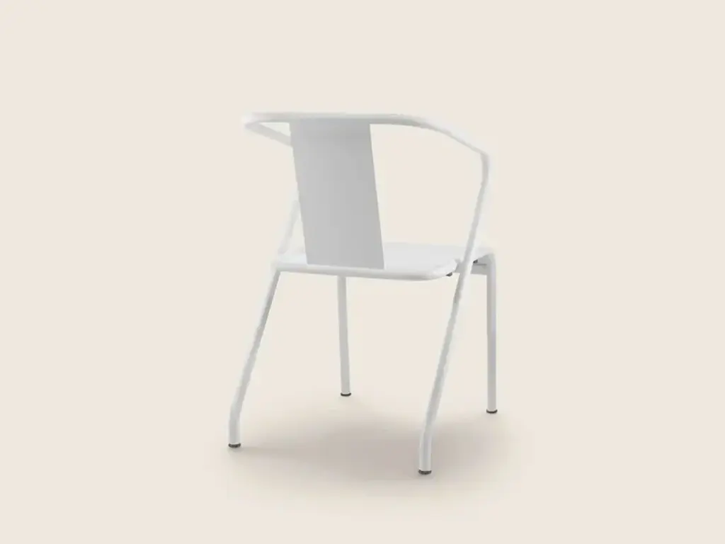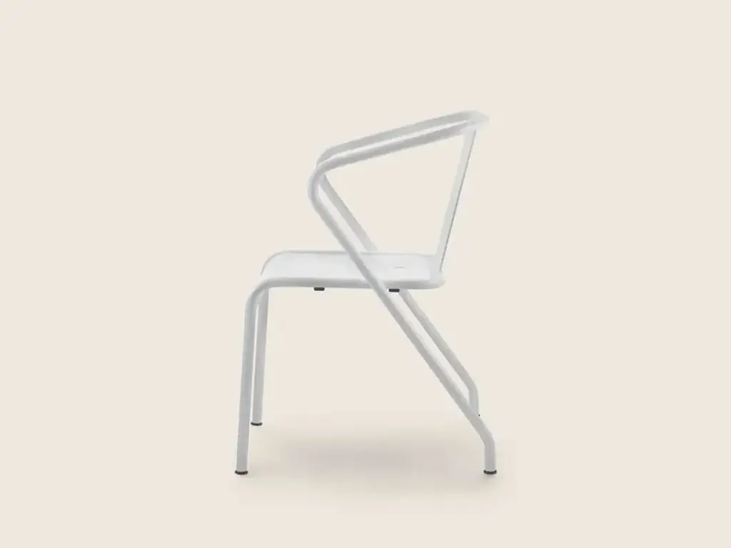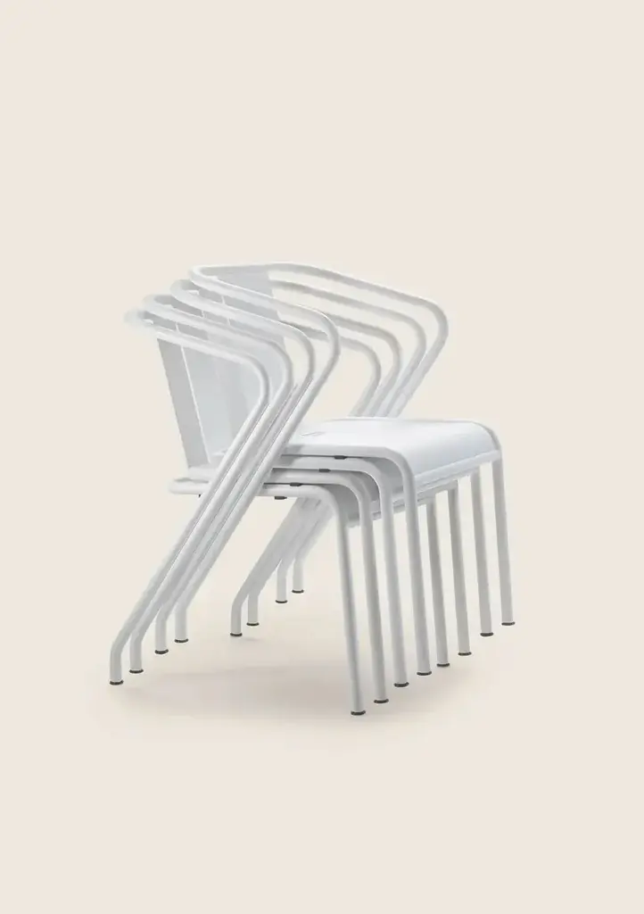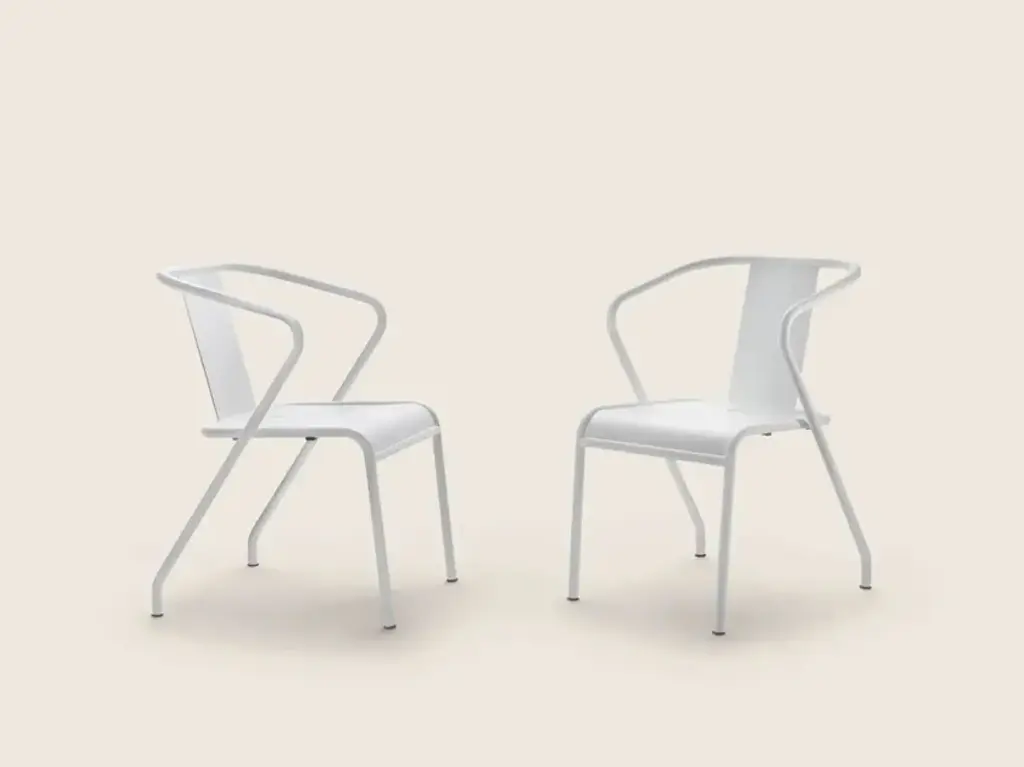 CALIPSO is a stackable garden chair made of painted metal.FeaturesStructure: made of stainless steel tubing and an aluminum seat, oven-painted with epoxy powders in the following textured colors: white 300, sand 310, sage green 330, terracotta 325. Stool with stainless steel electro-polished footrest.Feet: floor support with thermoplastic material tips.Calipso is inspired by the principles of 'good design' and the classic codes of metal chairs, characterized by a clean and essential design, deliberately simple.The sinuous structure is made of powder-coated metal, a finish that is particularly resistant to all weather conditions, making this chair perfect for outdoor environments.Easily stackable, it is a versatile chair that can be paired with all the tables in the Flexform collection and is suitable for furnishing a variety of residential spaces such as balconies, terraces, gardens, and pools, as well as hospitality projects like bars and restaurants.