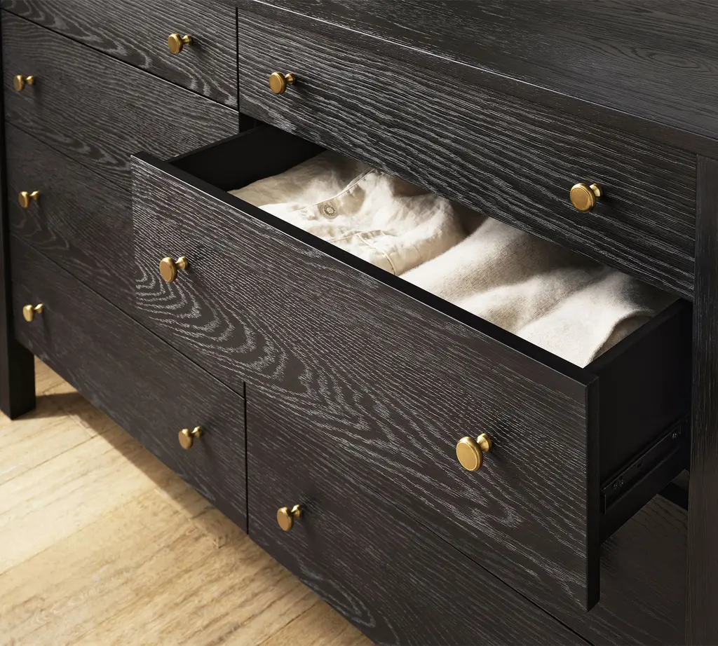 A blend of refined finishes and simpler lines, our Calistoga Collection brings hints of the past into the present. Inspired by classic pieces you’d find in a French chateau, this timeless silhouette features brass hardware and a rich wood frame.