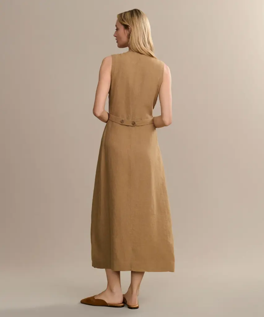 Callan Dress Khaki Equal parts buttoned-up and casual for everyday, this classic vest dress is the definition of a closet staple.