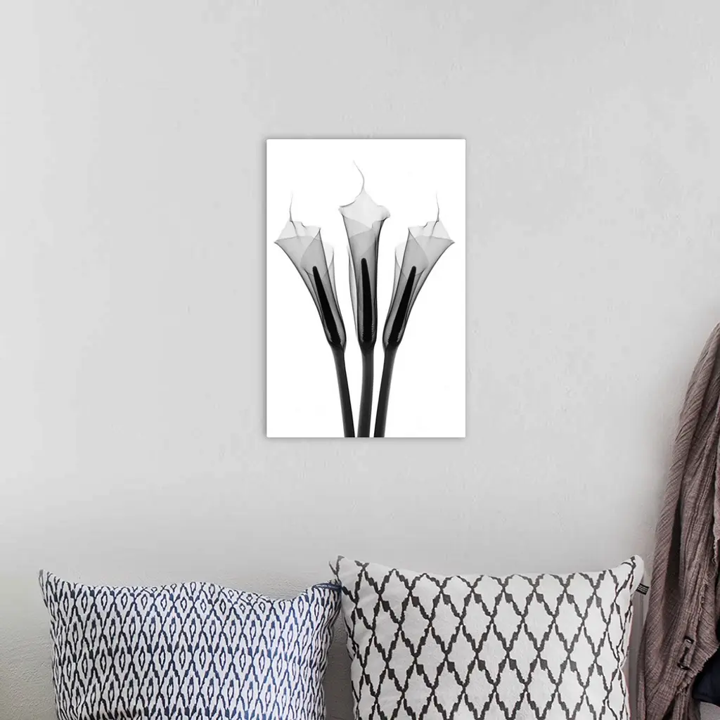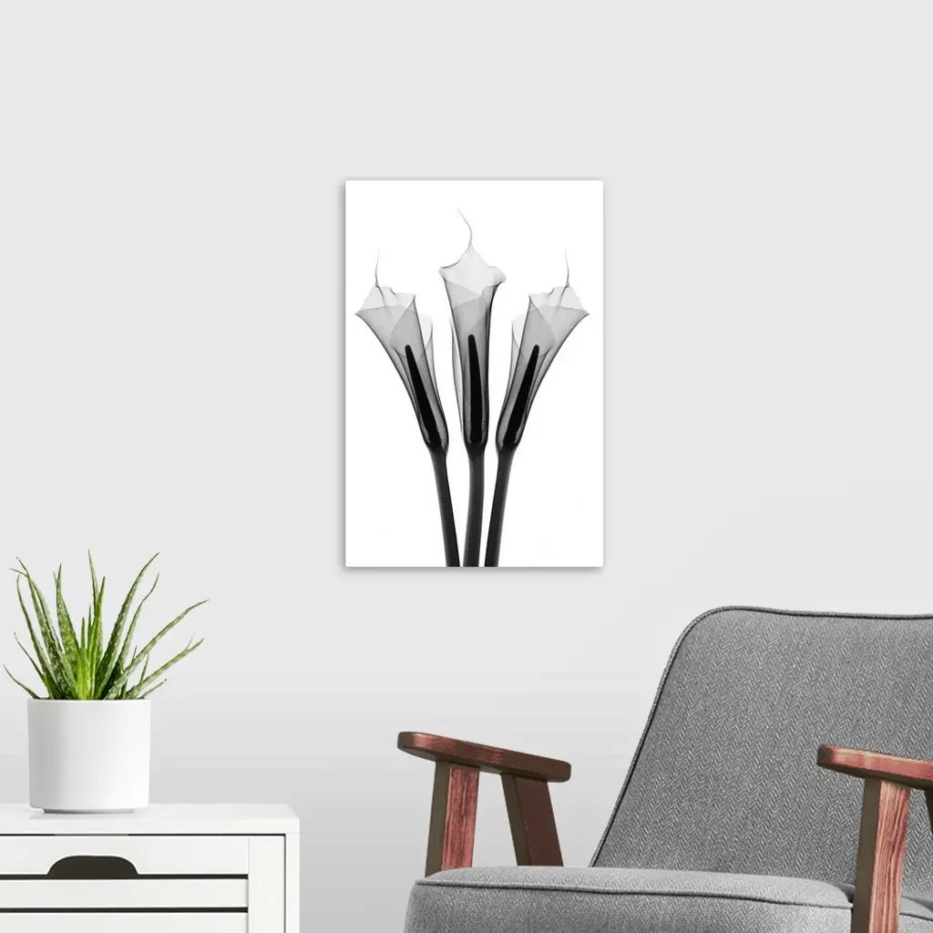 Fine art photograph using an x-ray effect to capture an ethereal-like image of calla lilies.