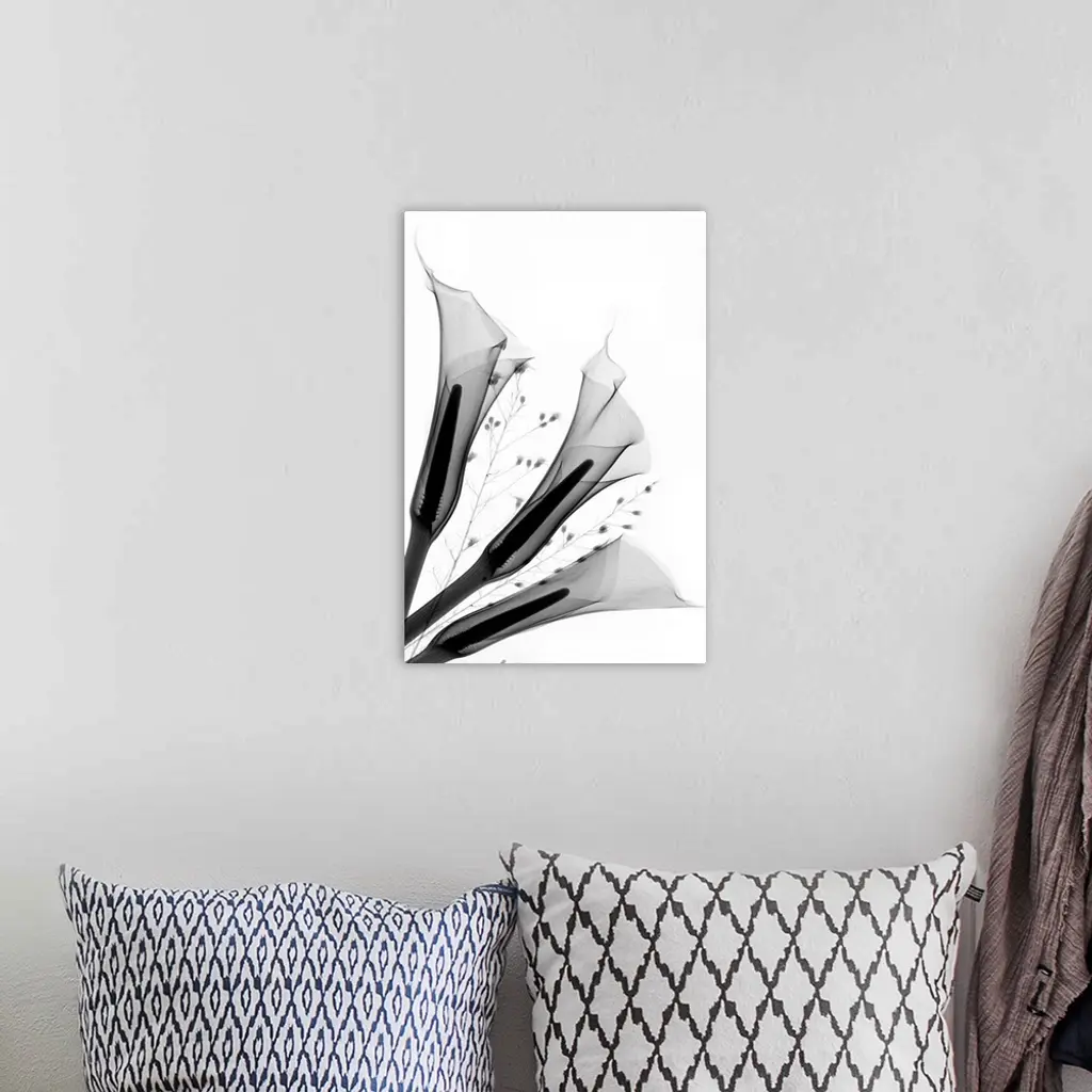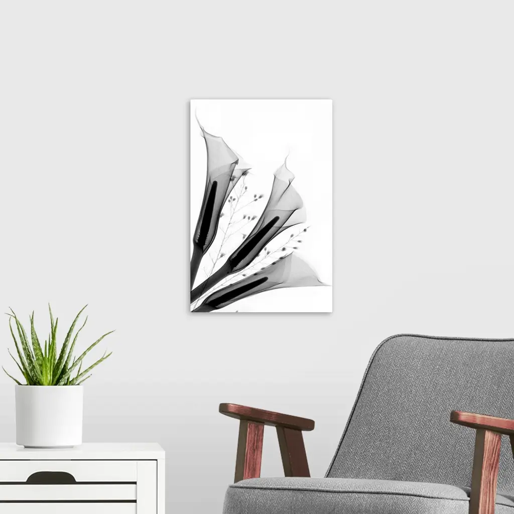 Fine art photograph using an x-ray effect to capture an ethereal-like image of calla lilies.