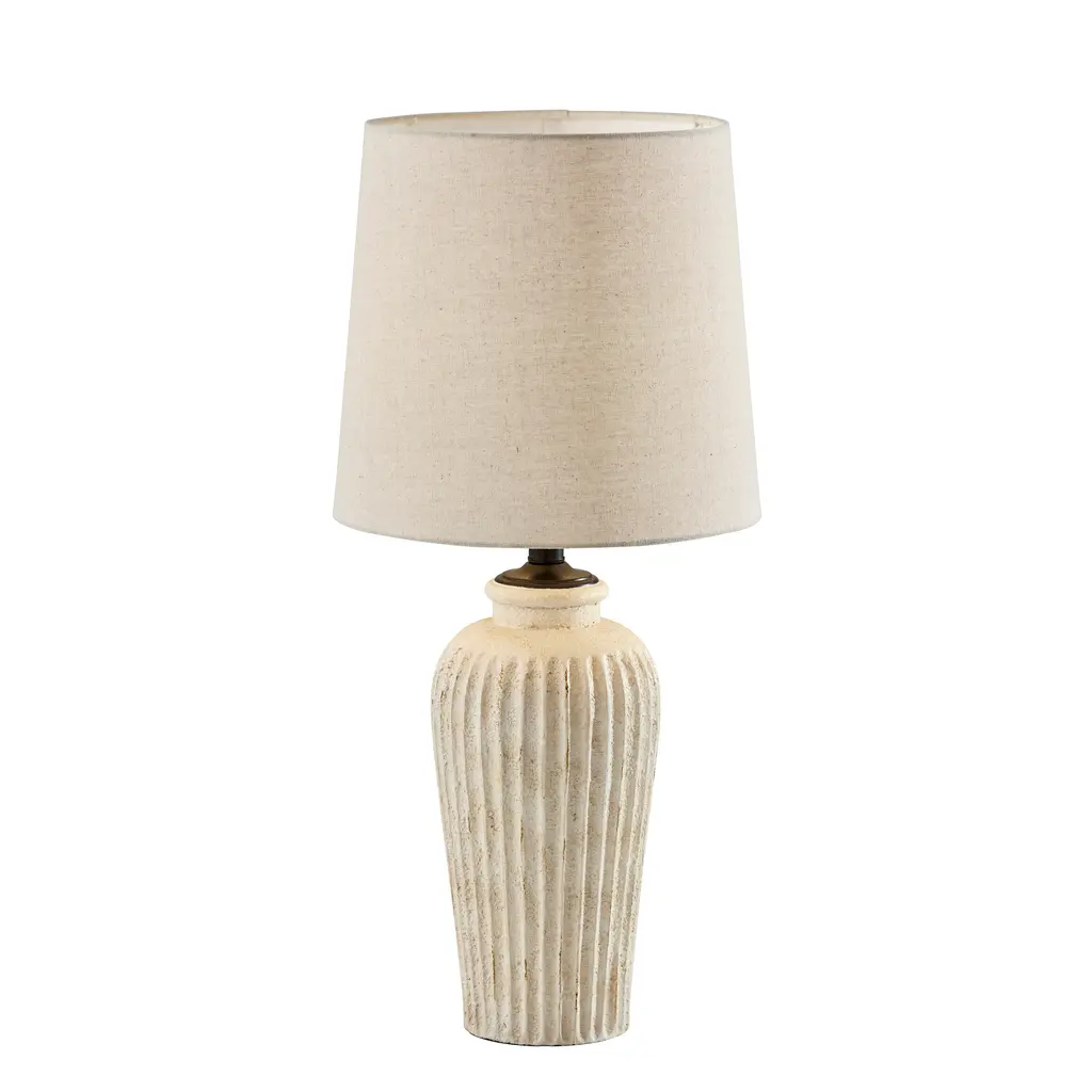 Callista Table Lamp- White Shade - Tan Textured Linen