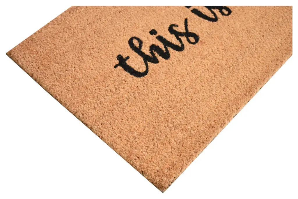Made of natural coir, a dense fiber that is naturally mold and mildew resistant. Coir is a renewable resource that is durable and coarse, excellent for scraping shoes clean. Vinyl backed for increased durability and to help prevent movement, coir doormats are weather tolerant absorb moisture and retain their shape. For best results keep in a sheltered area such as a covered porch, keeping extreme moisture and sunlight to a minimum. Vacuum, sweep or lightly hose clean.