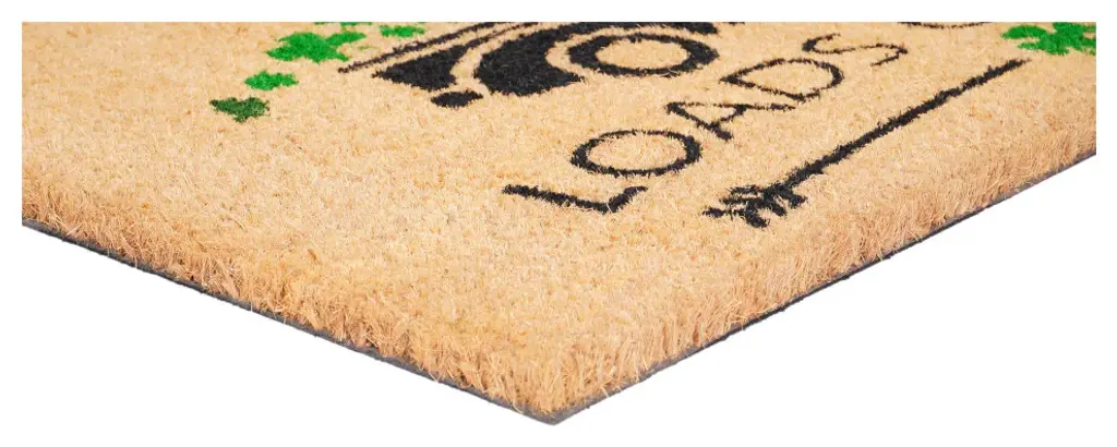 Made of natural coir, a dense fiber that is naturally mold and mildew resistant. Coir is a renewable resource that is durable and coarse, excellent for scraping shoes clean. Vinyl backed for increased durability and to help prevent movement, coir doormats are weather tolerant absorb moisture and retain their shape. For best results keep in a sheltered area such as a covered porch, keeping extreme moisture and sunlight to a minimum. Vacuum, sweep or lightly hose clean.
