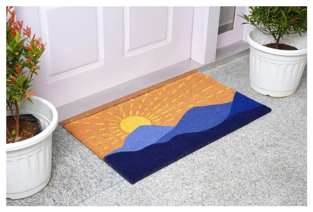 Made of natural coir, a dense fiber that is naturally mold and mildew resistant. Coir is a renewable resource that is durable and coarse, excellent for scraping shoes clean. Vinyl backed for increased durability and to help prevent movement, coir doormats are weather tolerant absorb moisture and retain their shape. For best results keep in a sheltered area such as a covered porch, keeping extreme moisture and sunlight to a minimum. Vacuum, sweep or lightly hose clean.